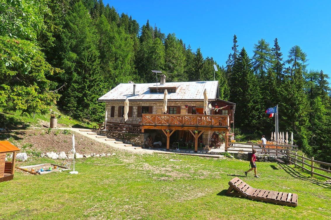 Man kann diese leichte Ferrata auch gut mit einer MTB-Tour kombinieren, das Fahrrad lässt man am besten bei der Malga Roen stehen.