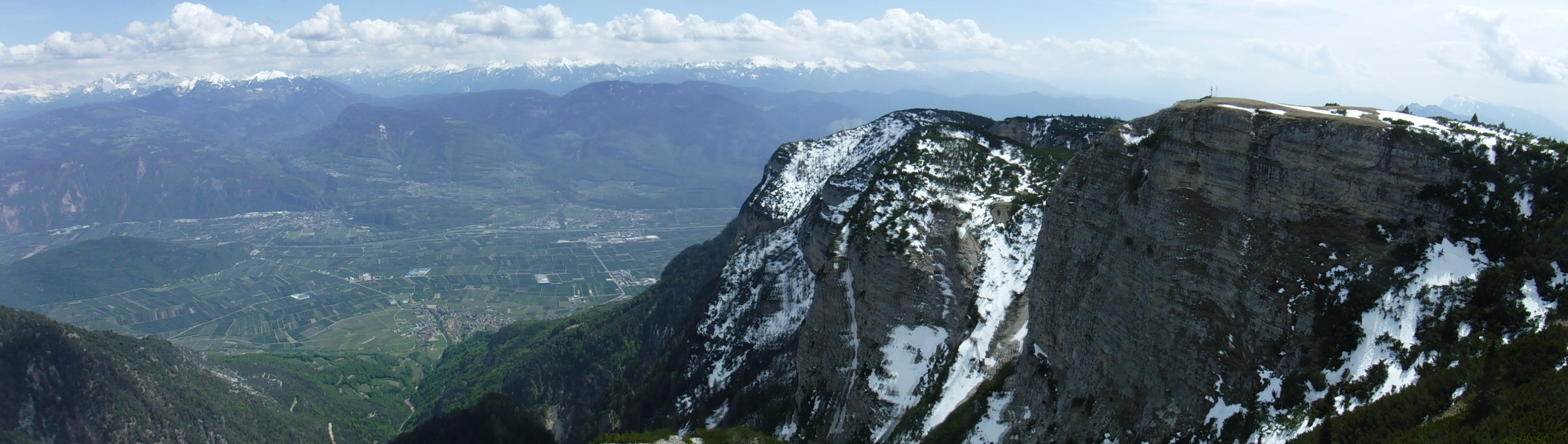 Der Monte Roen steht genau zwischen den Dolomiten und dem Brenta Gebirge, hoch über dem Etschtal. Der plateauartige Gipfel bietet eine der eindrucksvollsten Aussichten in Südtirol! An der Ostseite führt eine nicht allzu schwere Ferrata hinauf auf den Gipfelkamm, die man gut im Zuge einer Wanderung oder Biketour klettern kann.