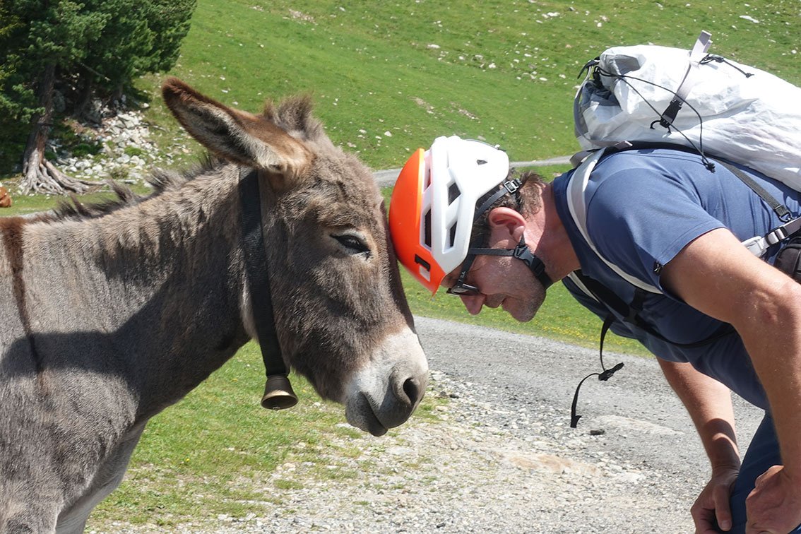 Achtung: Auf diesem Klettersteig liegen (Stand Juni 2025) noch SEHR viele lockere, teilweise recht große Steine. Vor allem, wenn viele Leute ober einem klettern, ist mit Steinschlag zu rechnen (unbedingt Helm). Auch Schafe auf den Grasbändern ober / im Klettersteig können Steinschlag auslösen! Attention: There are still a LOT of loose, sometimes quite large, rocks on this ferrata (as of June 2025). Rockfall is to be expected, especially when many people are climbing above you (wear a helmet). Sheep on the grassy ledges above/in the ferrata can also trigger rockfall!