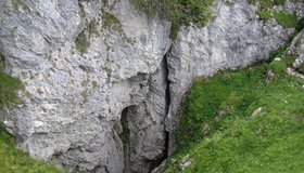 Nicht bei Nässe hinunter zum Höhleneingang klettern (sehr rutschig, auch in der Höhle ist es glitschig!).