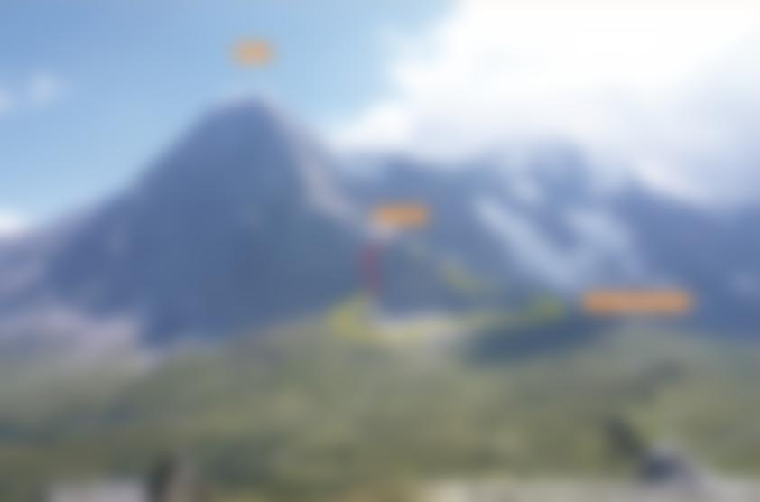 Über den Abstiegsweg am Gipfelgrat bis zur Leiter zurück zum Rotstocksattel. Dort nach Süden absteigen und entlang der Westflanke (weiß/blau) markiert über Platten nach Westen zur Station Eigergletscher hinunter. Die Platten sind stellenweise sehr glatt, man muss bis 1+ klettern und sich an Kletterseilen hinunterhanteln. Ohne Zusatzseil ist an dieser Stelle keine vernünftige Sicherung möglich. Bei Nässe und Schnee sehr gefährlich!