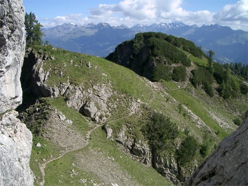Oberhalb der Kühalm beginnen die Versicherungen (max. A/B), welche zum Teil steinschlaggefährdet ins Hohe Törl (2233 m) leiten. Von dort kurz absteigen und weiter auf Gehweg zur Karlsbader Hütte.