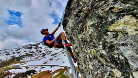 Dickes Stahlseil,Trittbügel nur im Schrofengelände