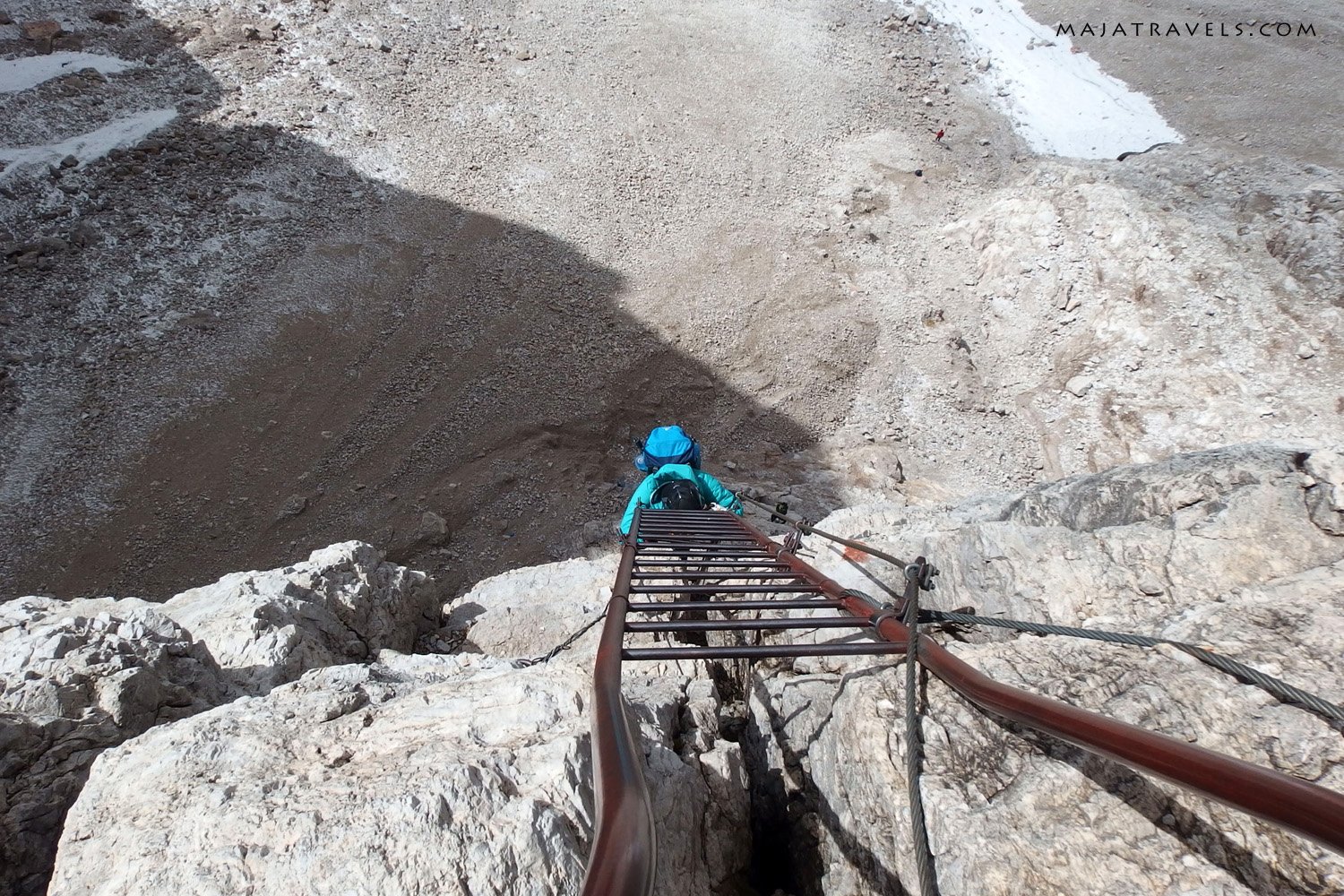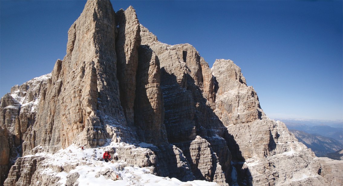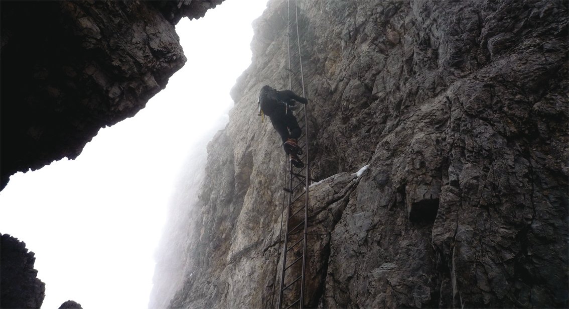Die wohl kühnsten Klettersteigmeter des Bocchetteweges und somit das vertikale Highlight der Brentadurchquerung. Fantastisches Auf und Ab über ausgesetzte Leitern und schöne Querpassagen auf den „Brentabändern“ - Dolomitenfeeling der Extraklasse! Am Ende des langen Steiges kann man über eine sehr steile, aber gut mit Leitern gesicherte Abstiegsvariante zum Rif. Alimonta absteigen. Dieser Abschnitt ist von vielen Leitern geprägt, Scala degli Amici bzw. Scala degli Dei sind die mit vielen Sprossen ausgestatteten Höhepunkte.