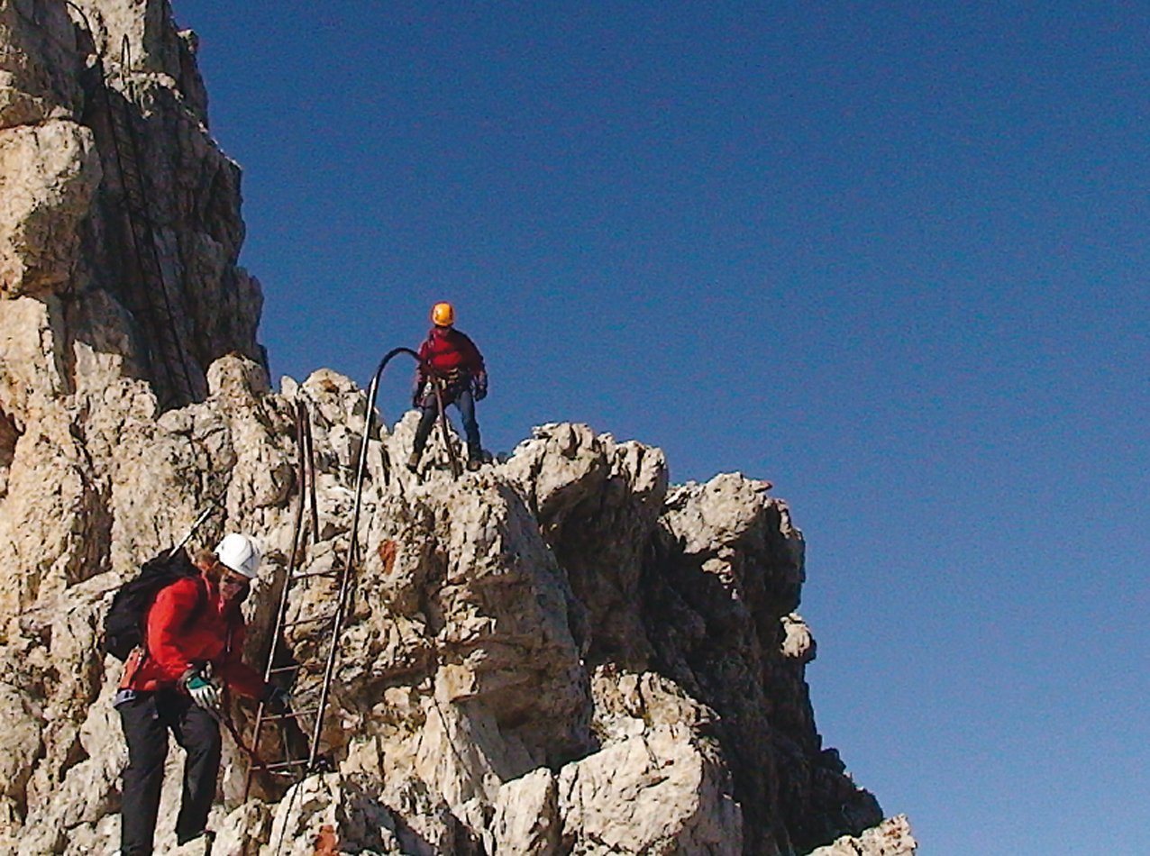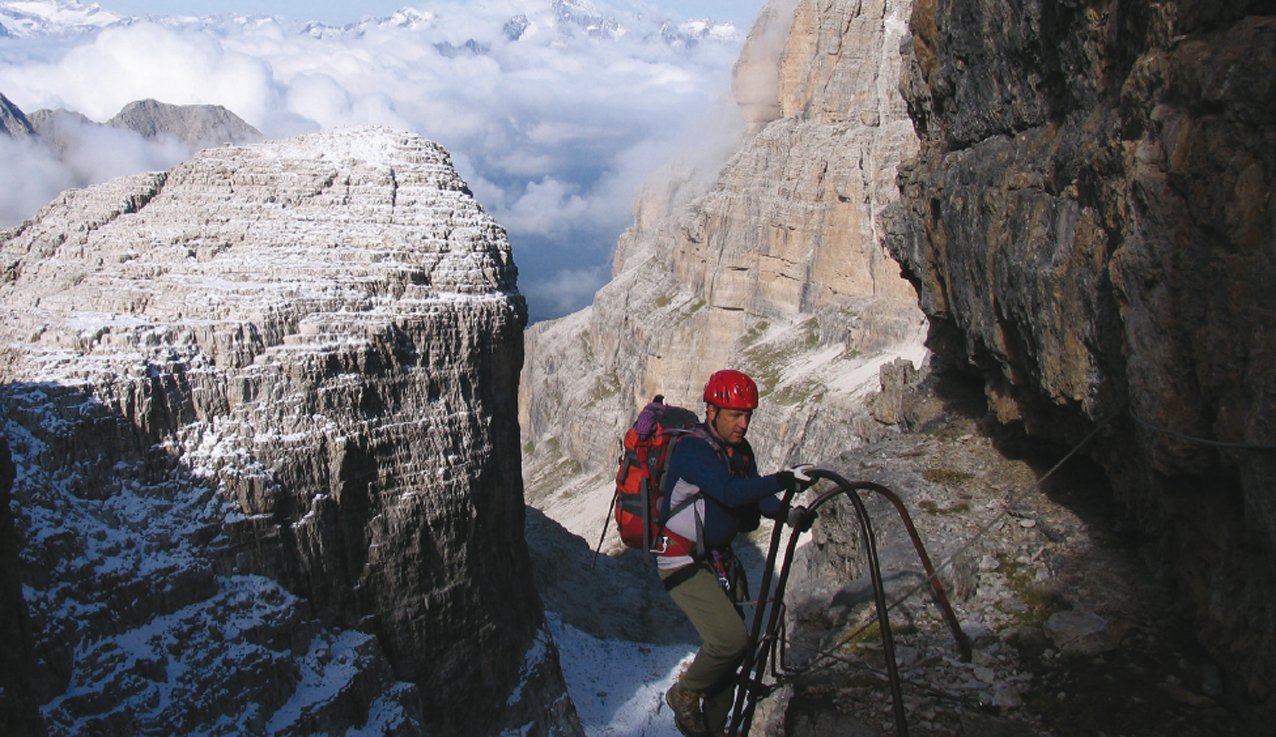 Das vertikale Highlight der Brentadurchquerung ist der Sentiero Bocchette Alte. Bei einem ständigen auf und Ab über ausgesetzte Leitern und schöne Querpassagen auf den "Brentabändern" kommt Dolomitenfeeling der Extraklasse auf! Zum Rifugio Alimonta kann man am Ende des Steiges über gut gesicherte Leiterpassagen absteigen.