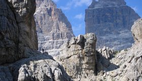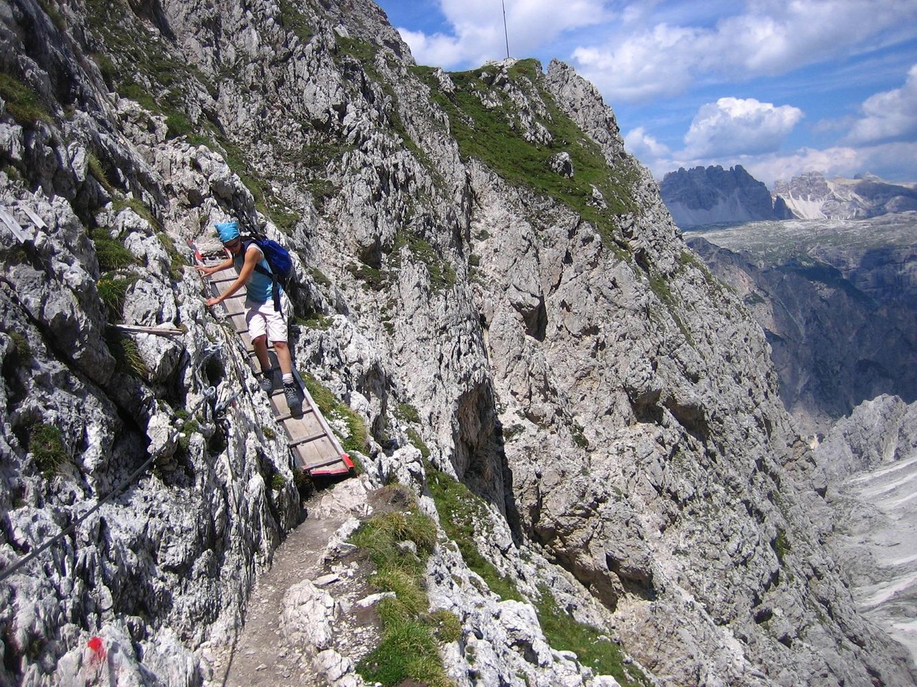 Obwohl man auf dieser Tour fast nur klassische Wanderer ohne Klettersteigausrüstung trifft, sollte besonders der Nordteil des Sent. Bonacossa wegen des losen Gerölls nicht unterschätzt werden.