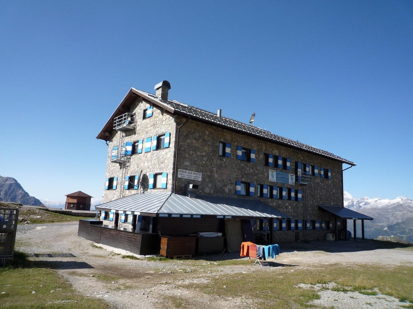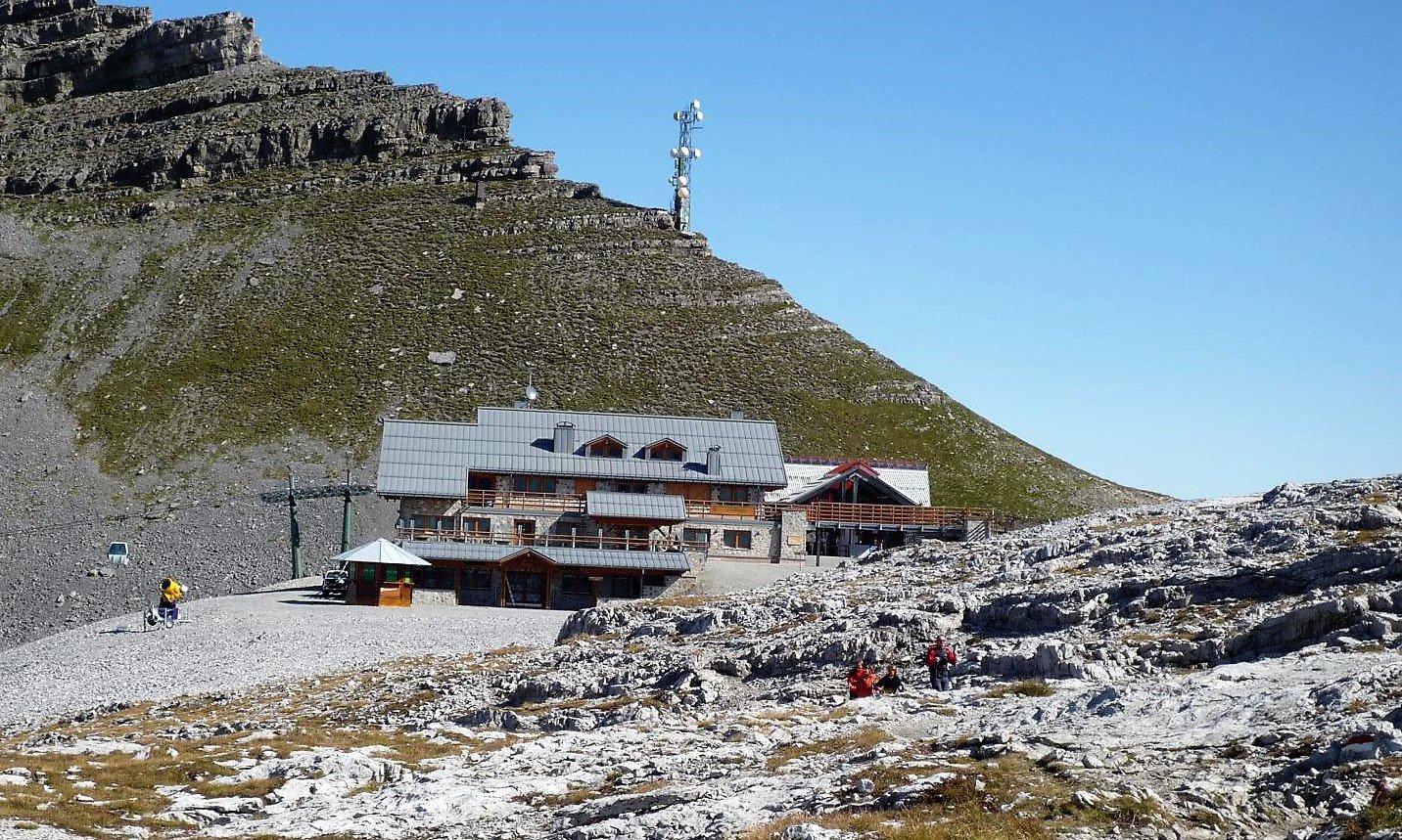 Am Ende steigt man auf dem Weg 336 linkshaltend zum Rif. Graffer ab. Von der Hütte entweder Aufstieg zum Passo Grostè, 2446 m (½ Std.) oder Abstieg zur Mittelstation (20 Min.).