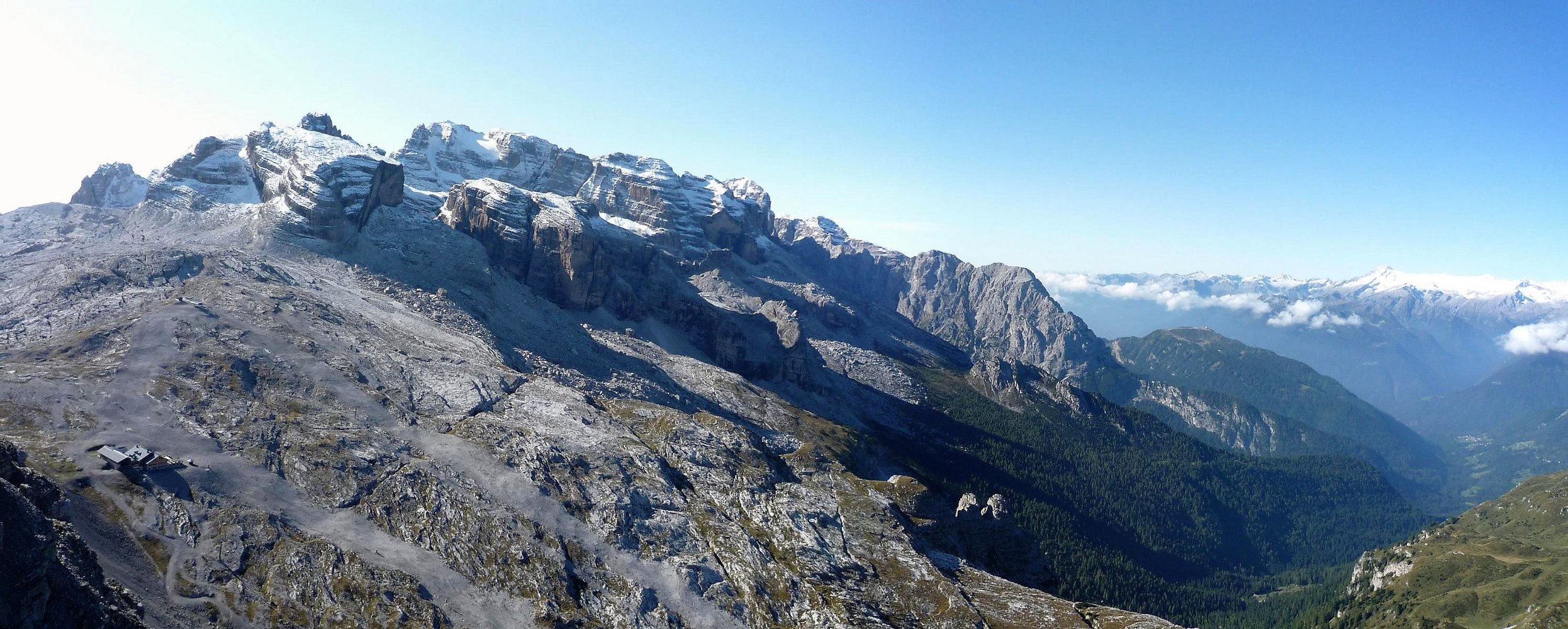 Unschwierige, kurze Querung in der Südfl anke auf Bändern unter der Pietra Grande und tolle Ausblicke auf die zentrale Brentagruppe. Die Tour wird gerne als Nachmittagsunternehmung bzw. als Zustiegsvariante für den Sentiero Costanzi gemacht – ideal zum Reinschnuppern in die Brenta Sentieros.