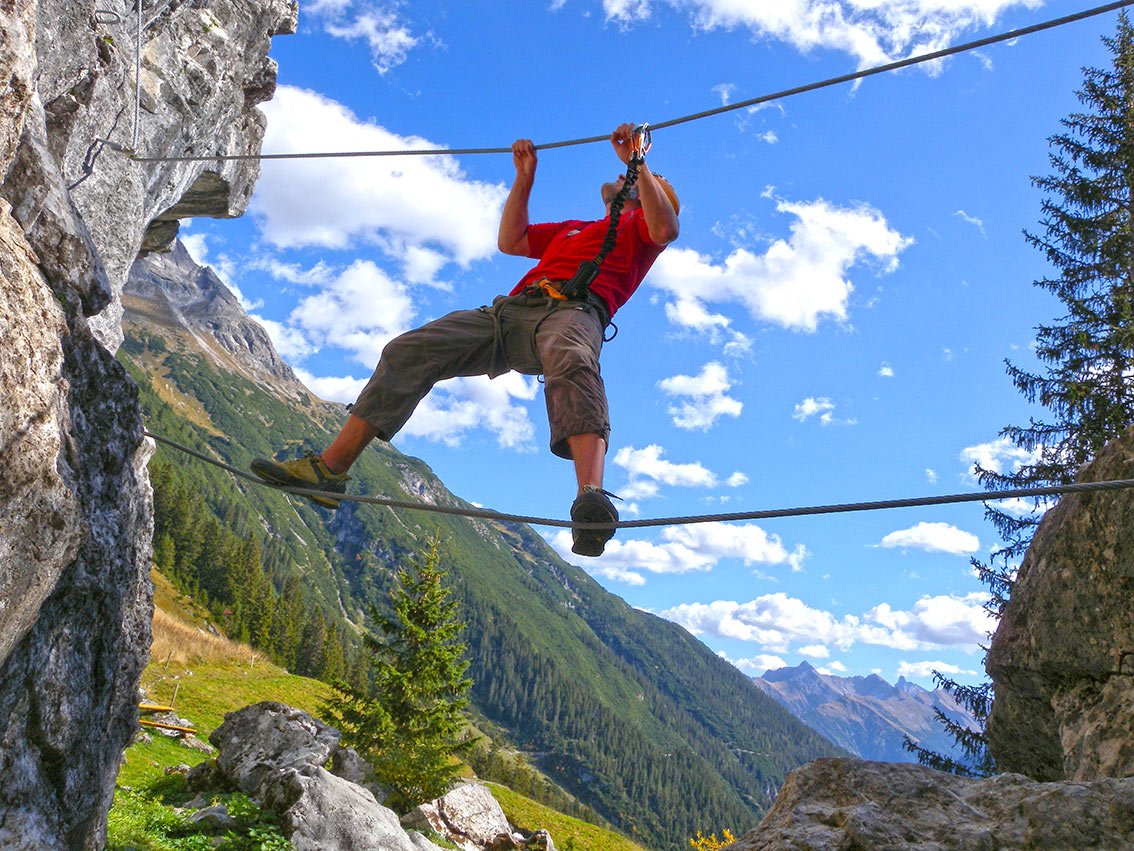 Dieser kurze, aber schöner Übungsklettersteig im Klettergarten Lechleiten bei Warth im Lechtal eignet sich gut als "Testgelände" für den Panorama Klettersteig am Karhorn.