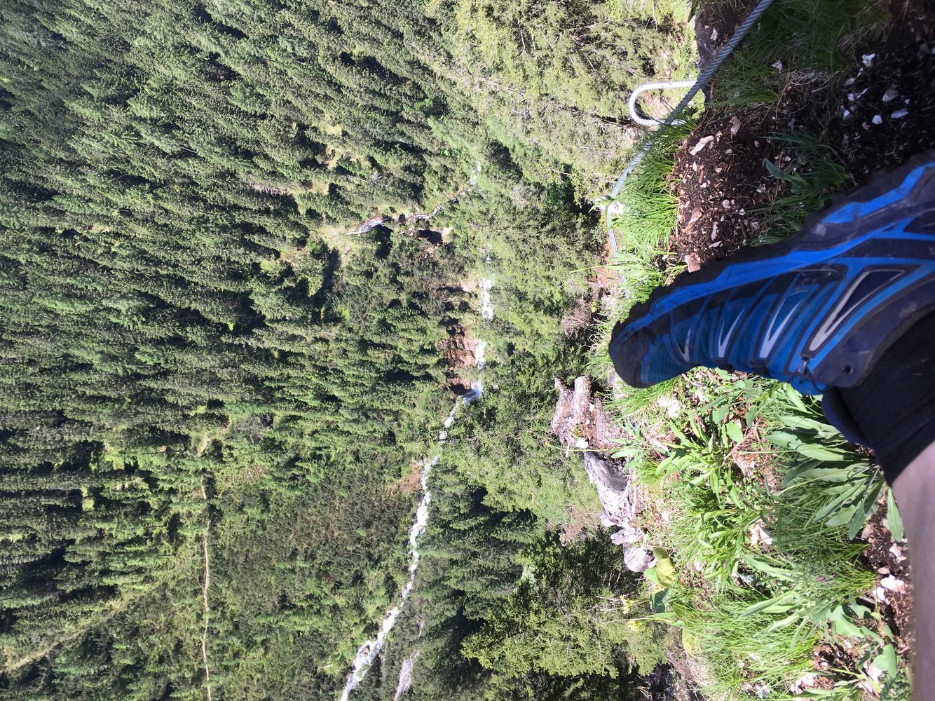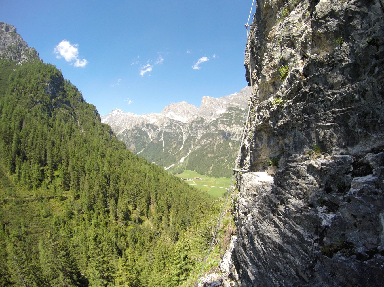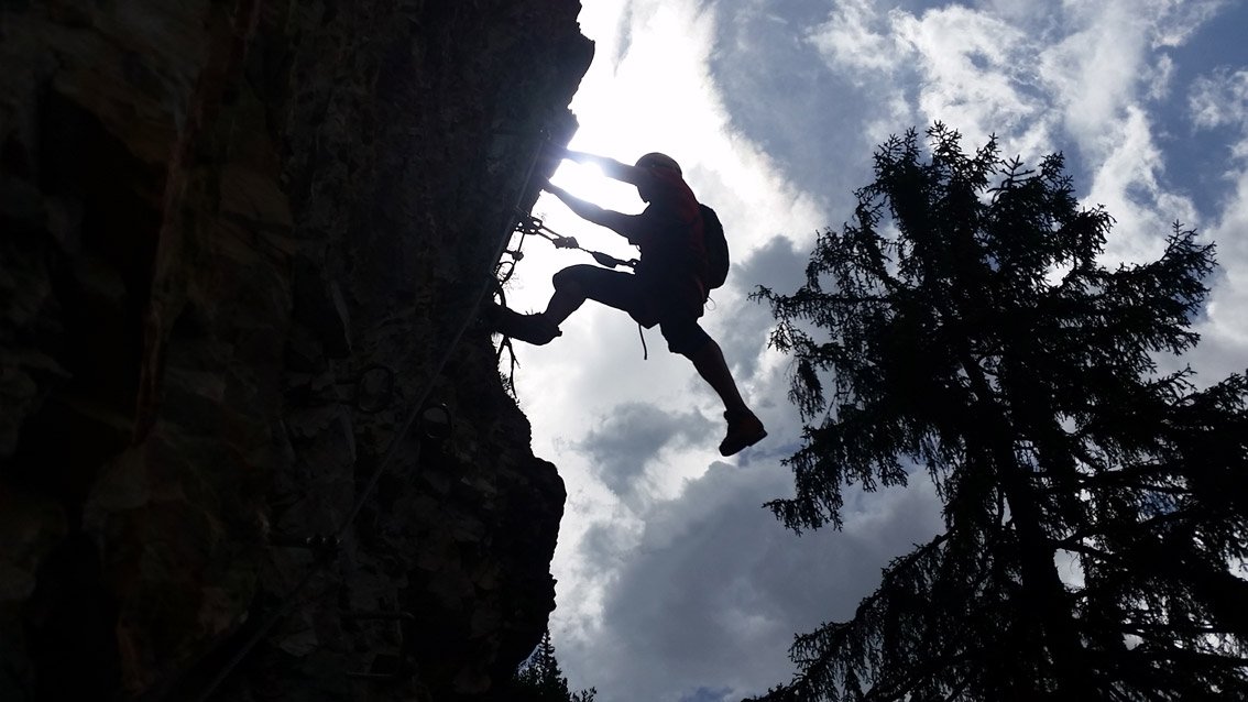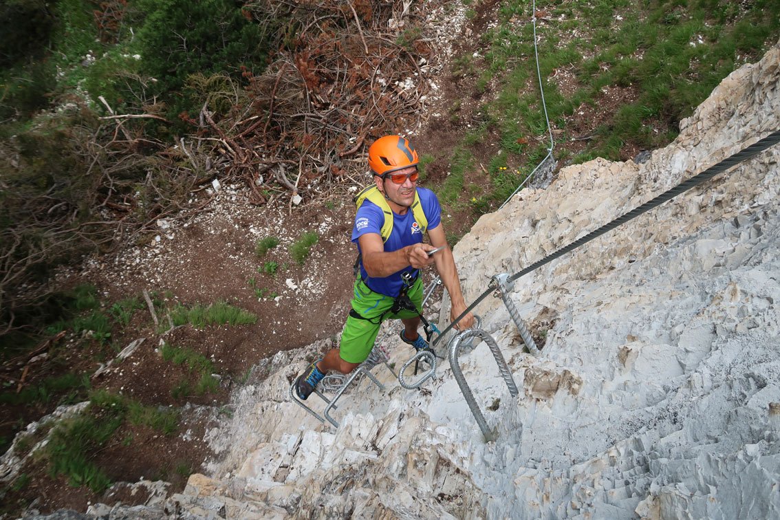 Klettersteigausrüstung und Helm. Für Kinder evtl. ein Sicherungsseil.