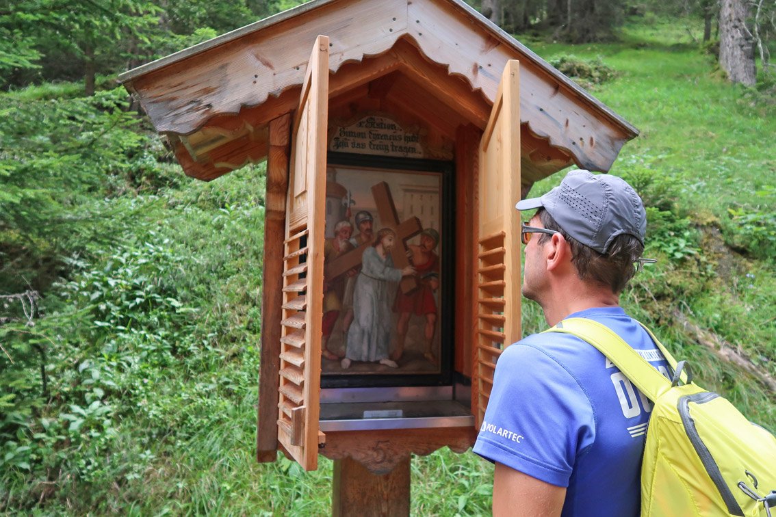 Vom Ausstieg bei der Kapelle (Jausenstation) nach rechts und auf dem Wanderweg zurück ins Tal - man kommt wieder am Einstieg vorbei. Weiter auf dem schon bekannten Zustiegsweg zum Parkplatz.