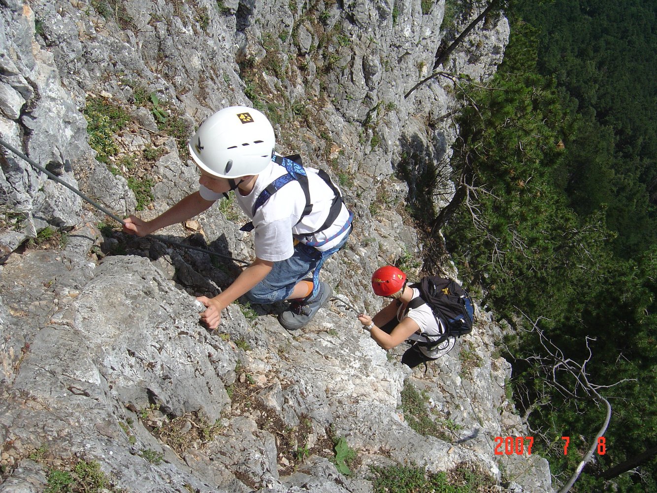 Rund 15 Jahe später hat die Steirerspur einen neuen Einstieg bekommen. Er zweigt bereits vor dem Hochplateau vom Springlessteig ab und trifft in genau in der Mitte des alten Steiges auf den Klettersteig. Rechts oder links? Wir empfehlen zuerst rechts und dann wieder zurück und links über den schwereren Teil hinauf zum Hubertushaus.