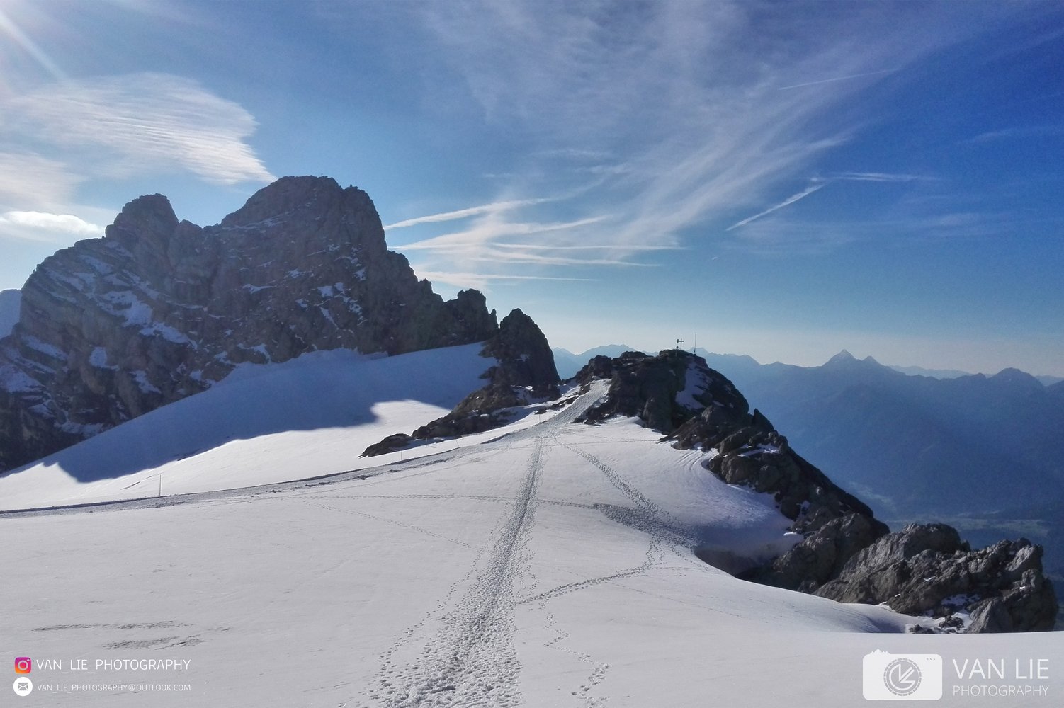 Teil 3: Von der Seethalerhütte geht es weiter über den Gletscher zum Einstieg des Schulteranstieges. Über diesen Klettersteig (Stelle C, sonst leichter) erreicht man dann nach ca. 300 Hm den Dachsteingipfel (2995 m) und gleichzeitig den höchsten Punkt der Steiermark.