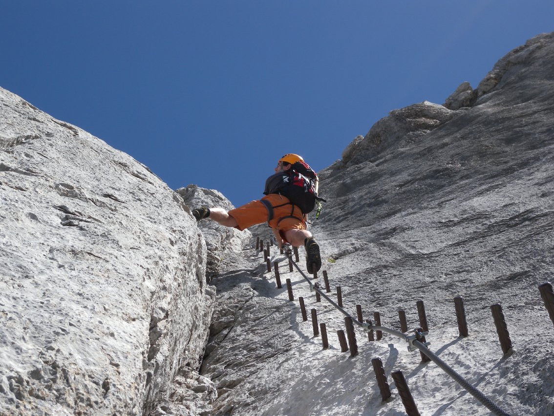 Teil 1: Es beginnt mit dem Anna-Klettersteig (D Stelle, meist aber C/D und C), der 2010 quasi als unterer Teil des Johann-Klettersteiges errichtet wurde. Der Klettersteig führt auf den Mitterstein (300 Hm).