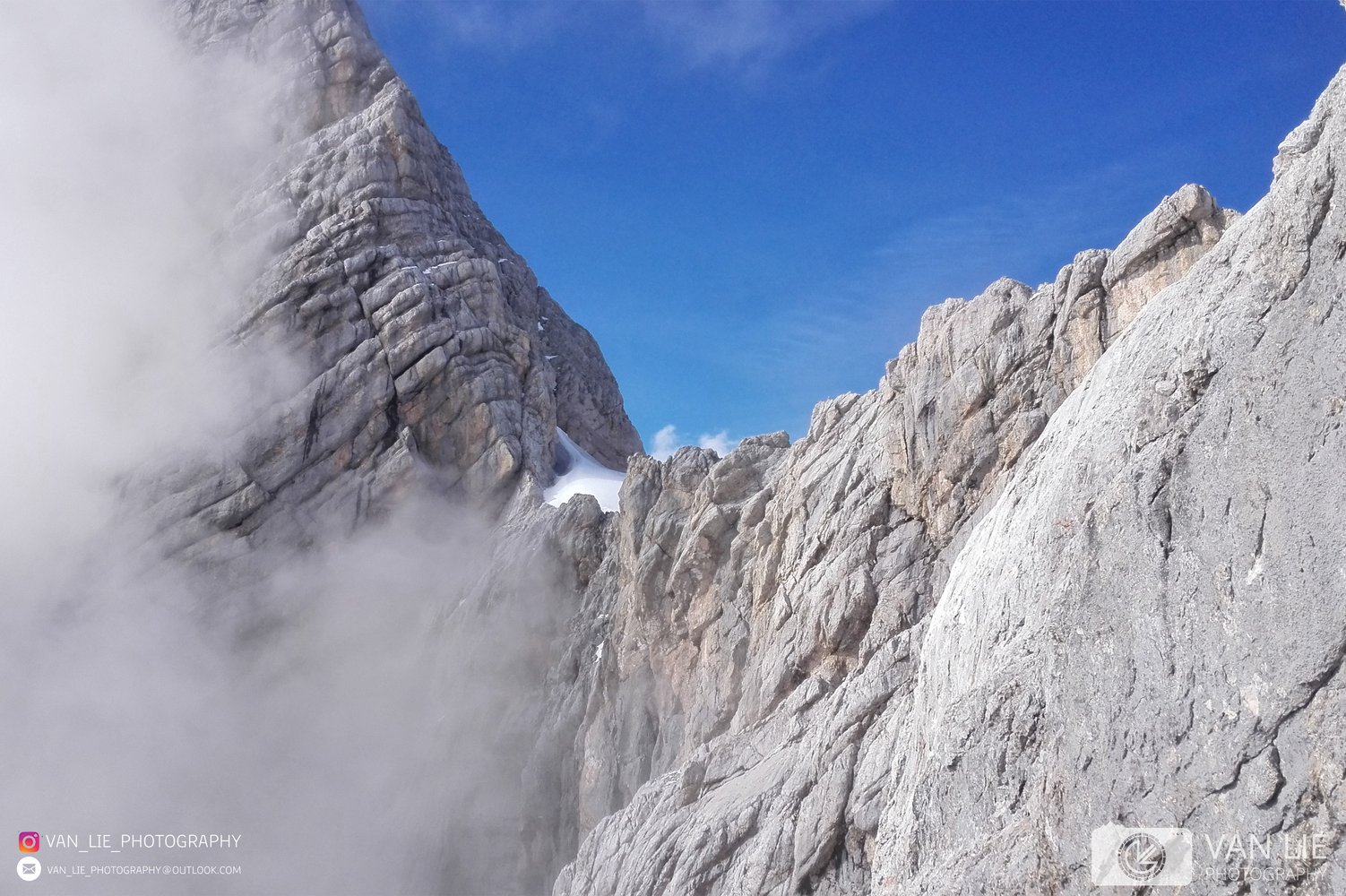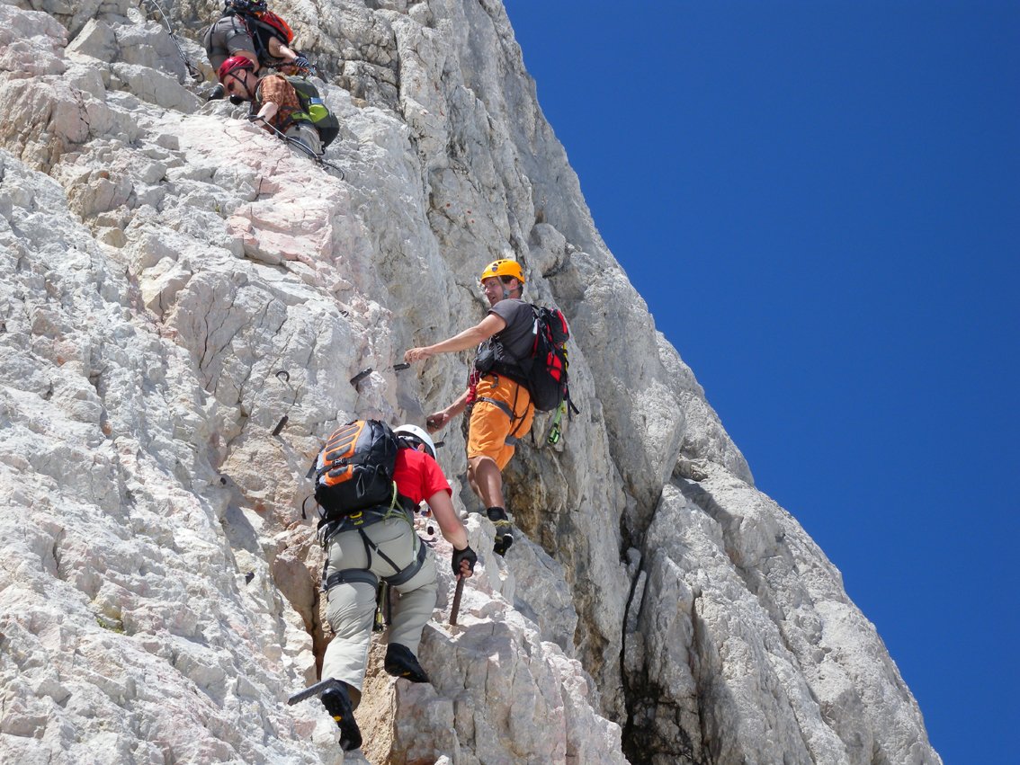 Auf dem Weg zum Johann-Klettersteig Einstieg sind oft steile Altschneefelder (wenn diese gefroren sind, braucht man Steigeisen und Pickel). Ganz oben, kurz vor dem Gipfel, oft Menschenmassen auf dem Steig, daher sind dort meist Wartezeiten einzukalkulieren!