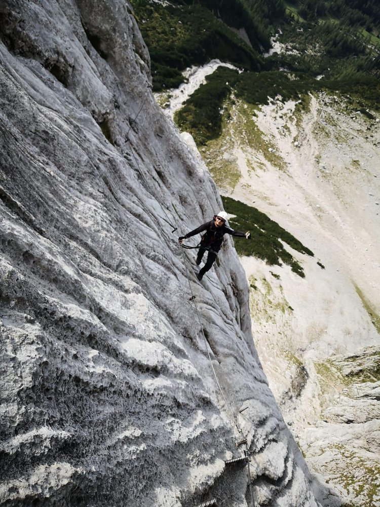 Im Gesamten eine sehr anspruchsvolle und vor allem lange Klettersteigtour. Alpine Erfahrung ist auch für den Abstieg über den Hallstätter Gletscher (Spalten) nötig.