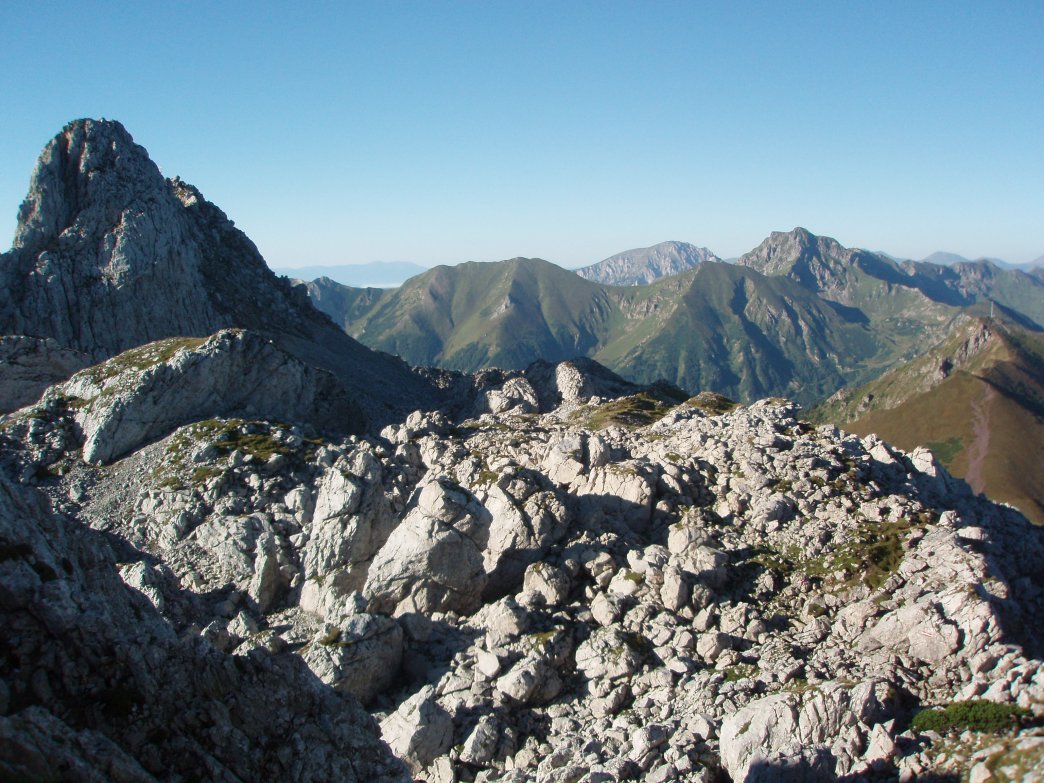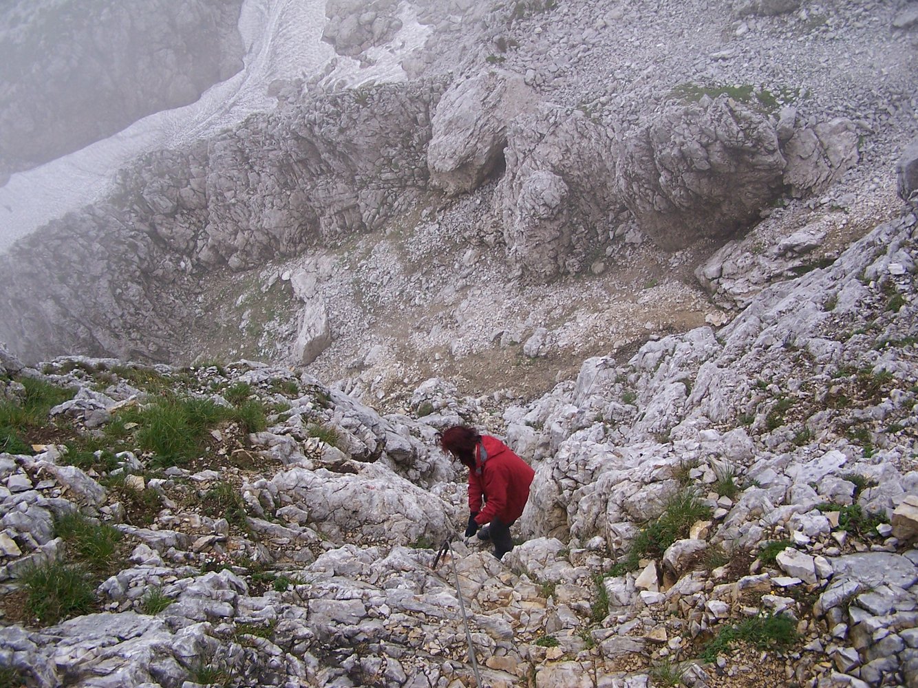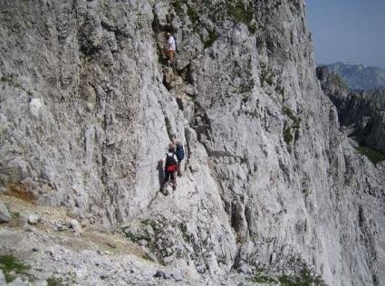 Alternativer Zustieg vom Präbichl: Vom Präbichl über die Leobener Hütte und den Hirscheggsattel entlang der Griesmauer unter den Gipfelaufschwung der TAC-Spitze. Hier beginnen die Versicherungen. (2,5 Std.)
