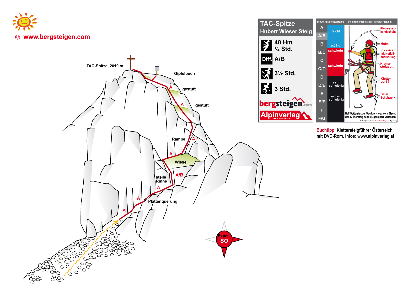 Kurzer Steig auf den Gipfel der nach dem Techniker Alpen Club benannten TAC-Spitze. Als eigenständiges Klettersteigziel sicher nicht lohnend. In Verbindung mit einer Wanderung oder einem Besuch der Frauenmauerhöhle jedoch ein tagesfüllendes Programm.