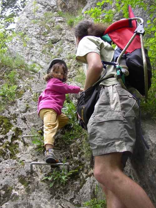 Klettersteiggrundausruestung und Helm (nur für Anfänger und Kinder erforderlich)