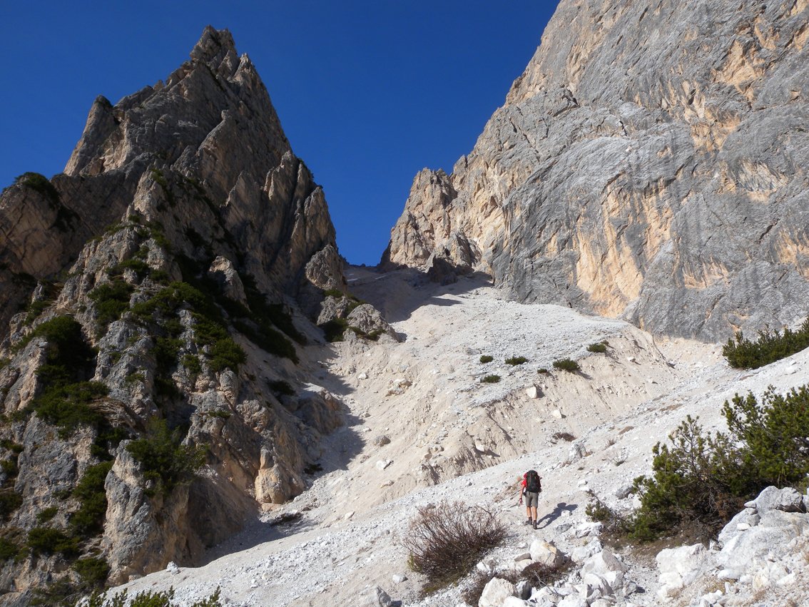 Sehr aussichtsreiche "Wandernplus"-Tour oberhalb von Cortina. Man quert brentaähnlich ein ansteigendes Band von links nach rechts und steigt oben direkt beim Gipfel der Punta Erbing aus. Die Route auf dem dritten Band wird auch Passaggiata di Croda (Spaziergang) genannt. Während der Tour und vom Gipfel der Punta Erbing hat man einen perfekten Ausblick auf Cortina. Man steht quasi in der Mitte der Dolomiten und kann alle wichtigen Gebirgsstöcke überblicken.