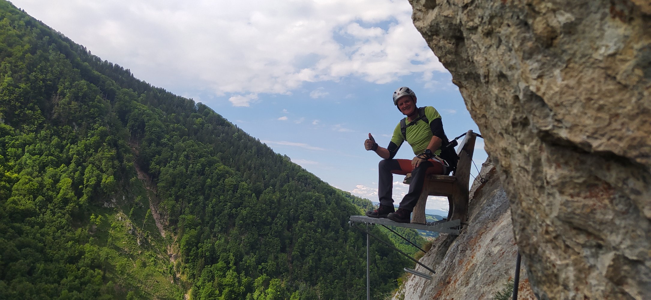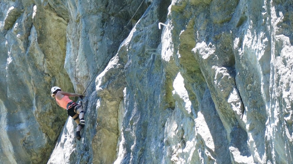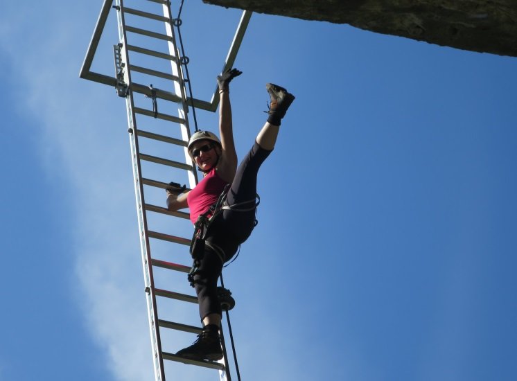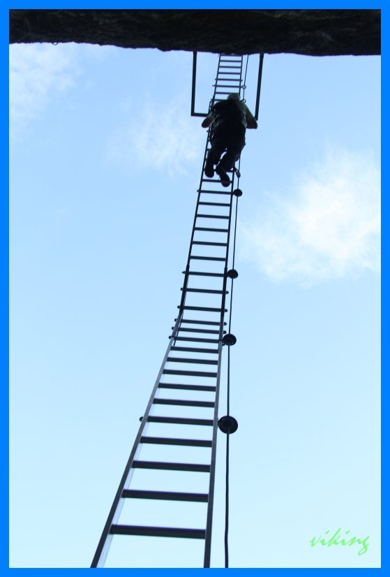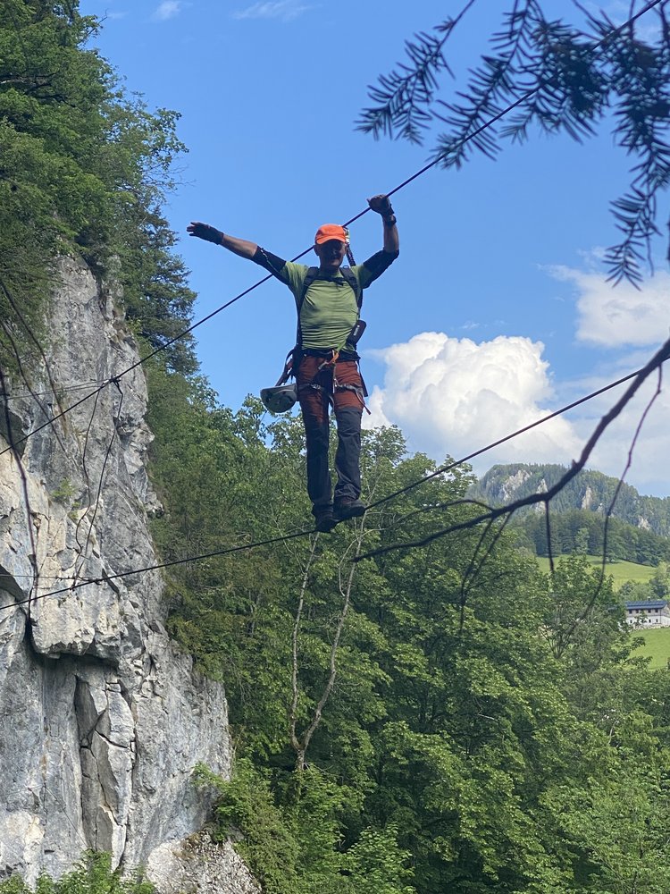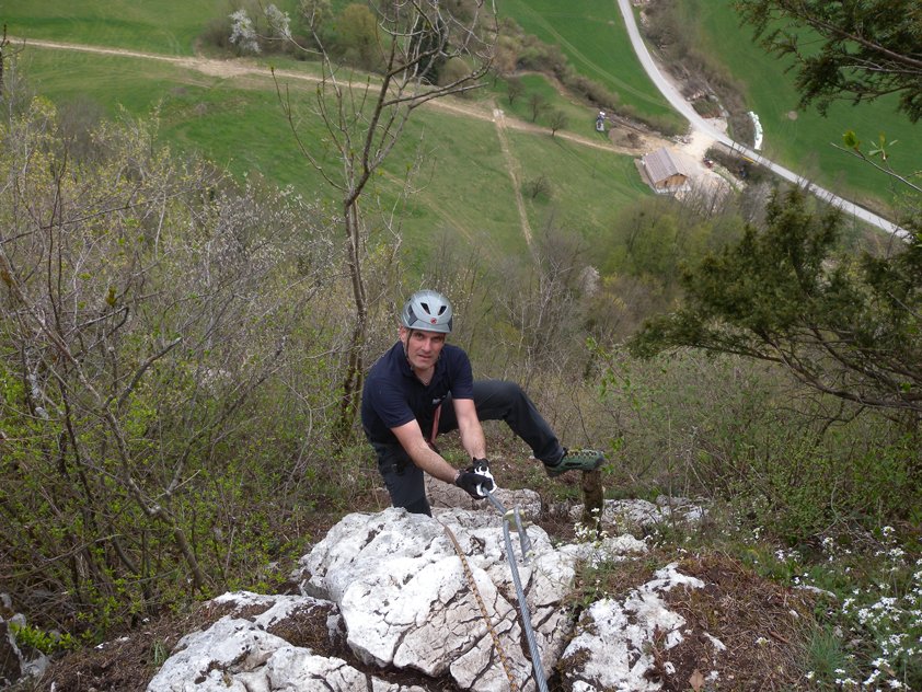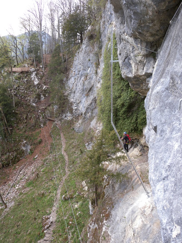 Gut mit Stahlseil und Trittklammern gesichert.