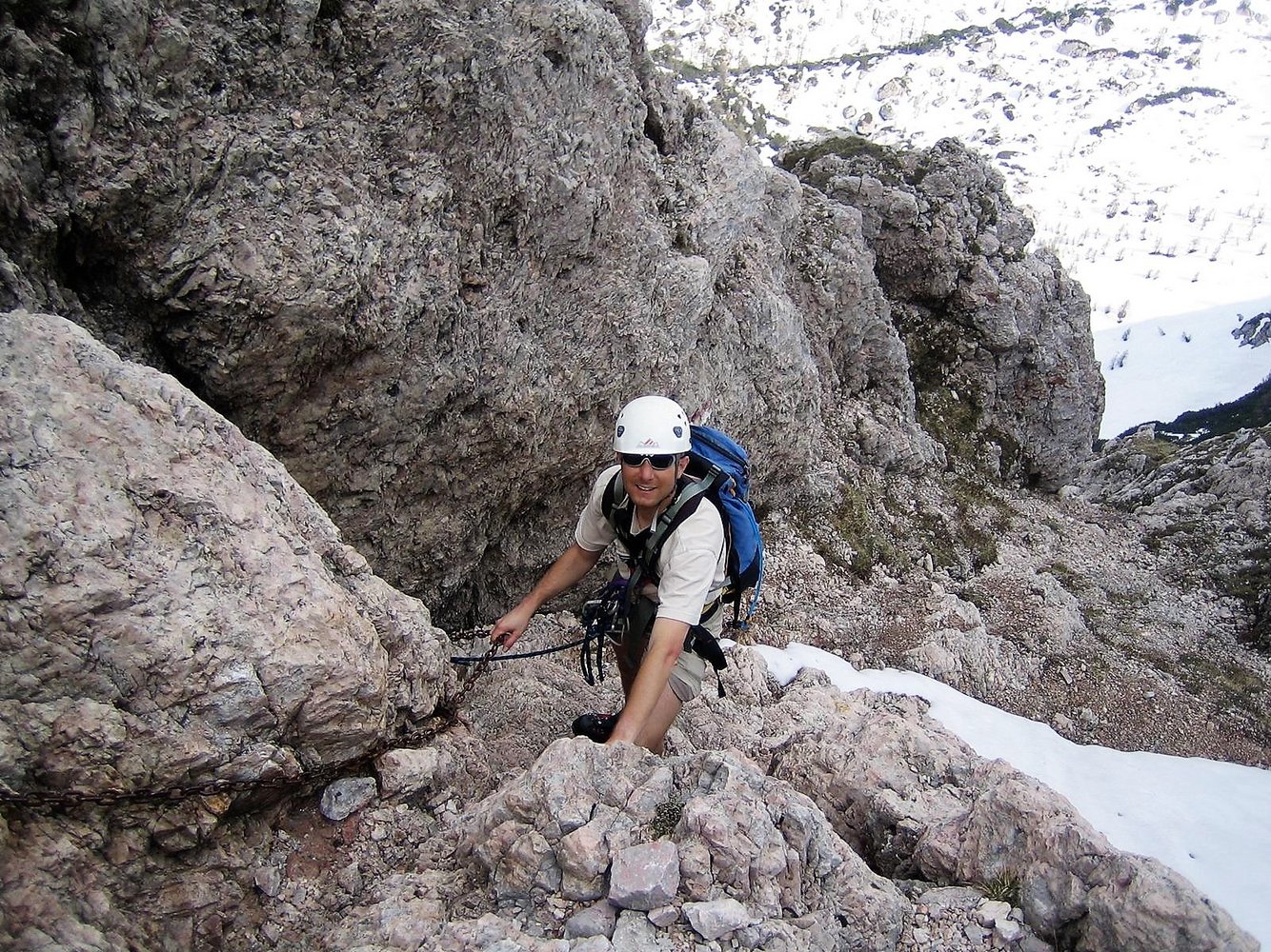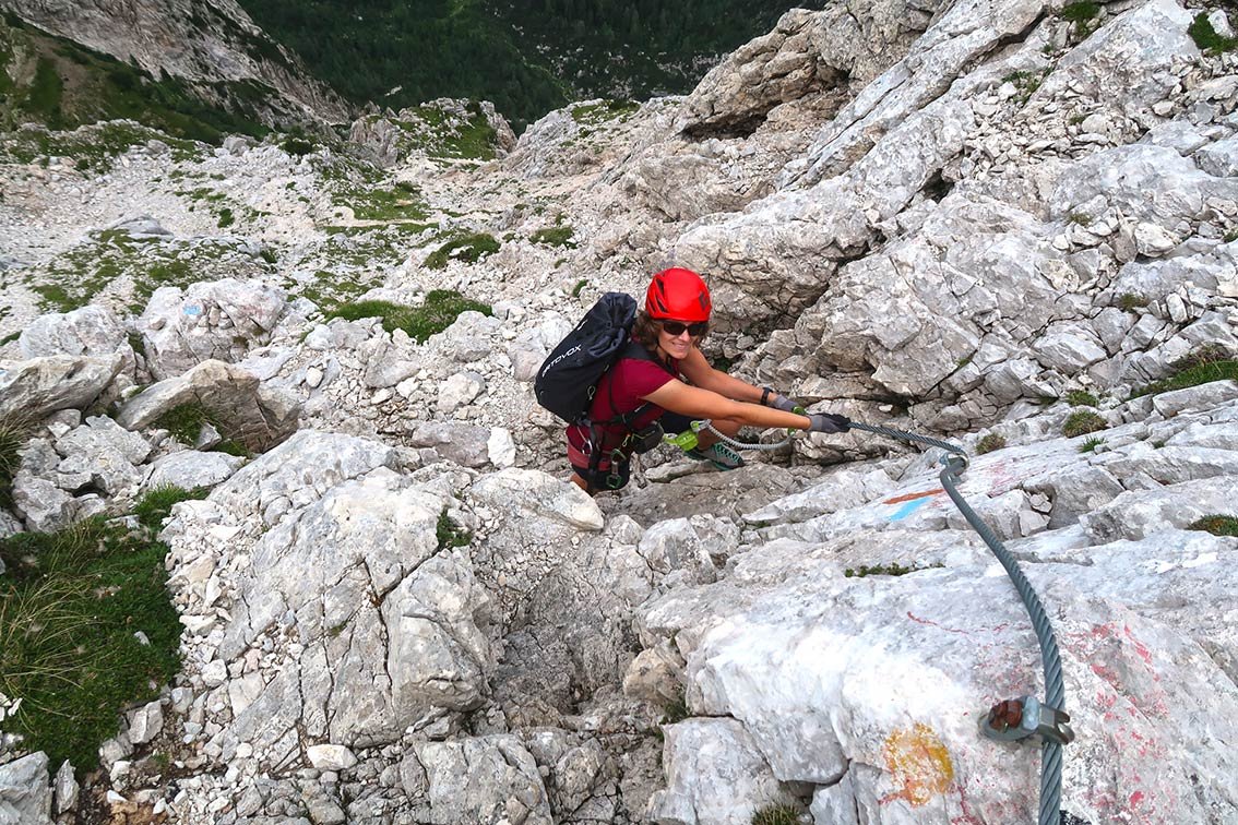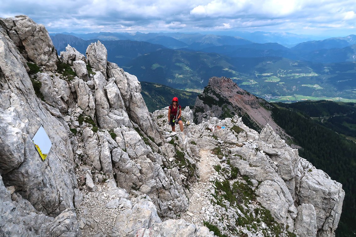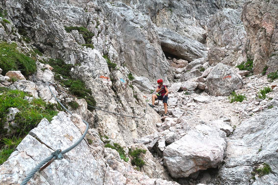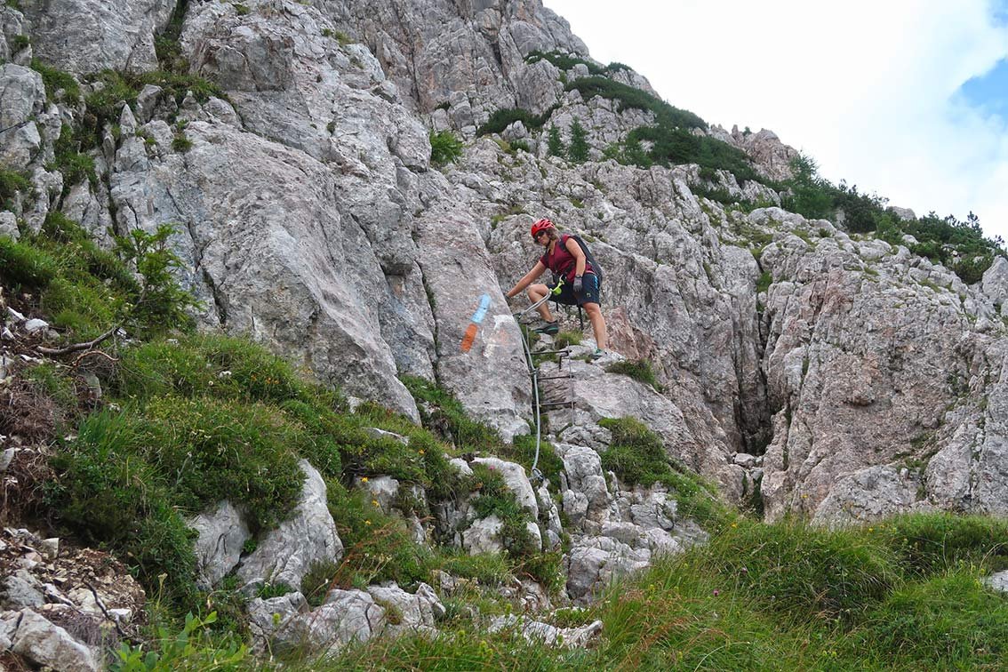 An den steilen Passagen gut mit Stahlseil und Leitern gesichert. Lange Schrofenpassagen aber ohne Sicherung!