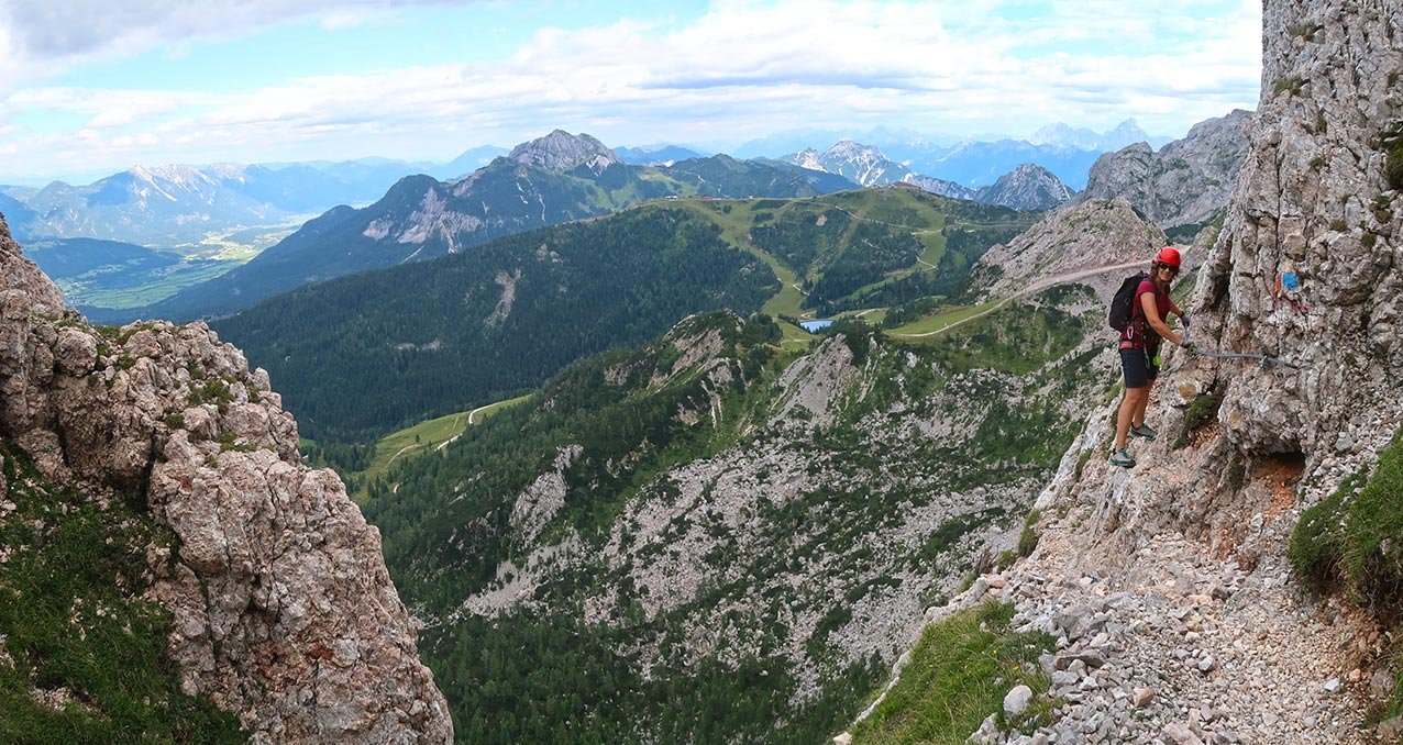 Klettersteigausrüstung - der Steig wird aber oft auch ohne Ausrüstung gemacht.