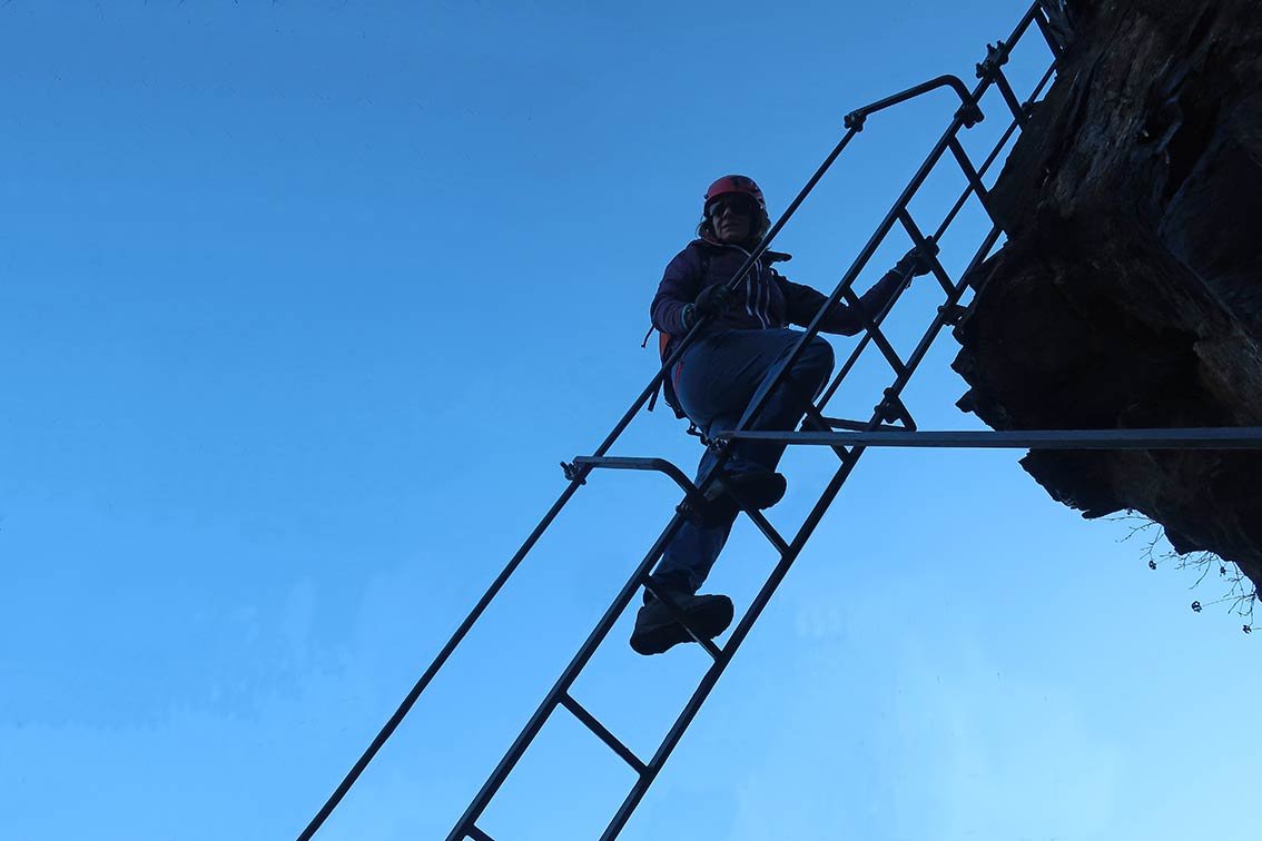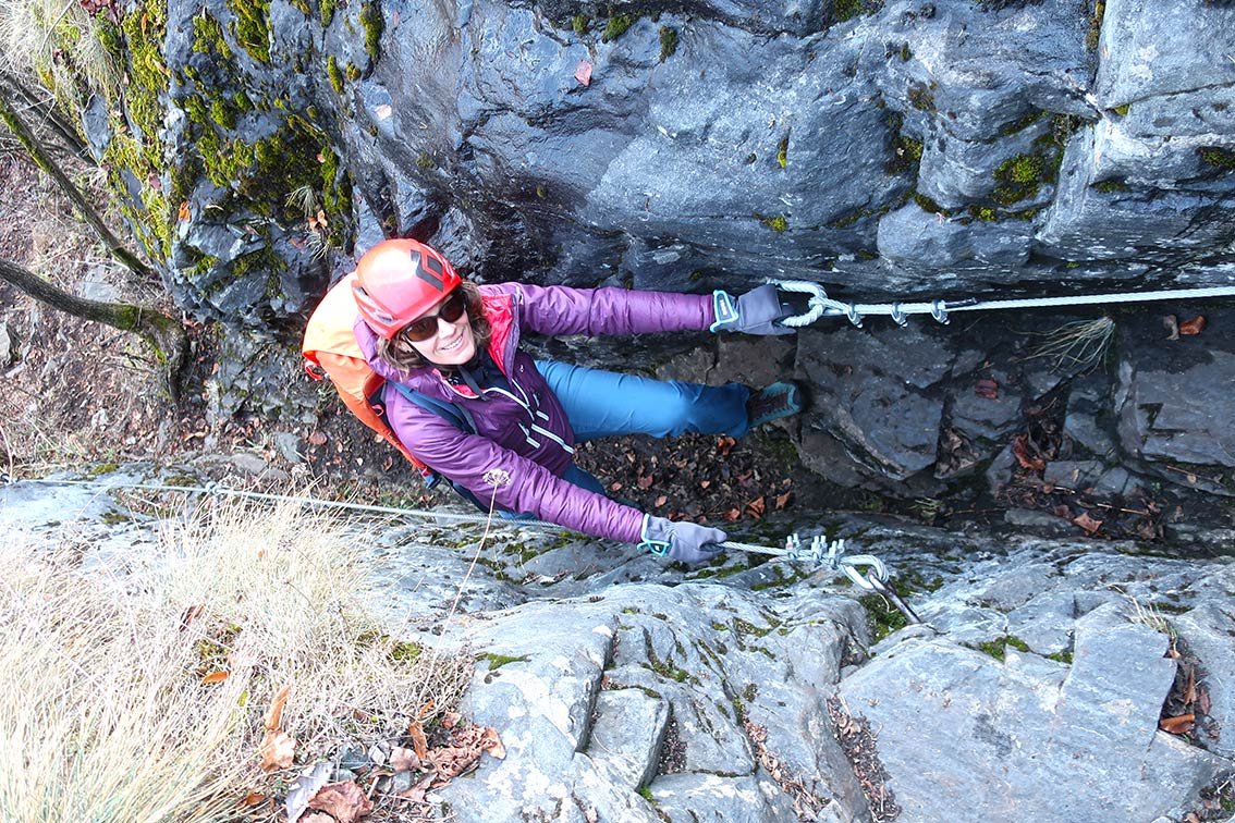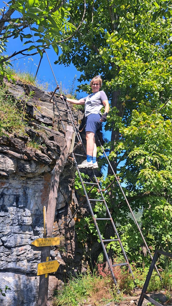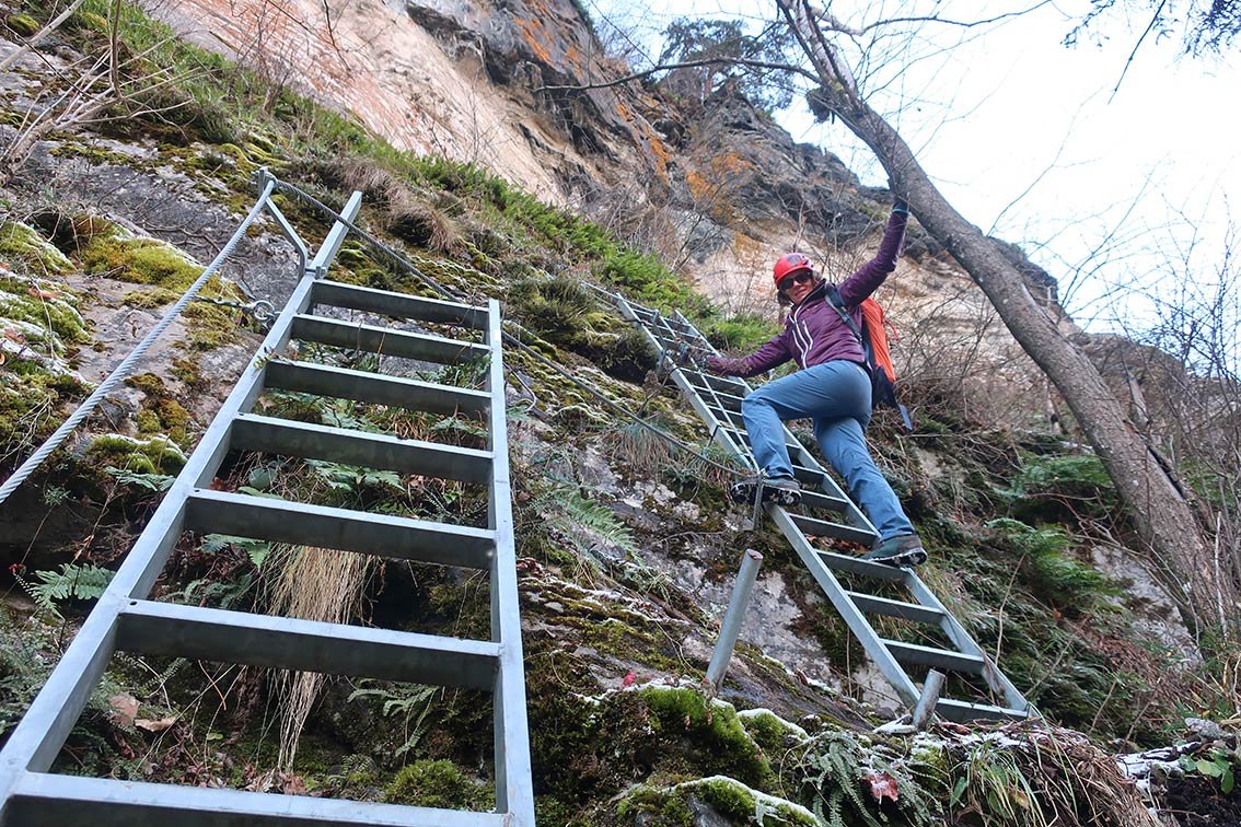 Nur für Ungeübte und Kinder Klettersteigausrüstung bzw. ein kurzes Sicherungsseil. Für den Steig ist aber Trittsicherheit nötig, schwindelfrei sollte man auch sein.