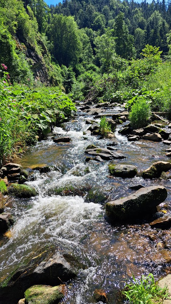 Bei Nässe ist Vorsicht geboten. Man kann die Runde auf diversen Wanderwegen - z.B. zum gegenüberliegenden Wotanfelsen - ausbauen. Da man oft im Wald, im engen Tal bzw. am Bach unterwegs ist, ist diese Tour auch für den Sommer geeignet.
