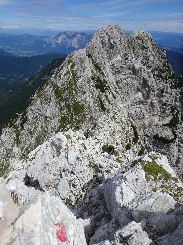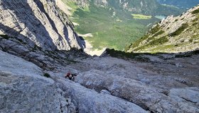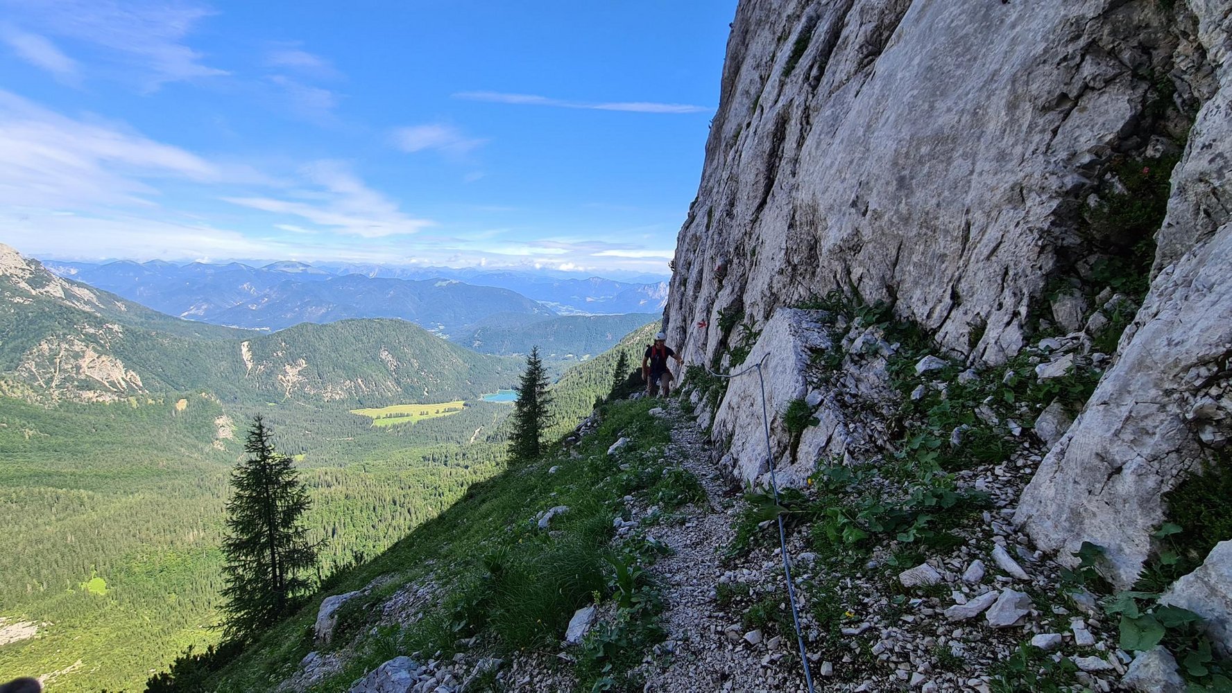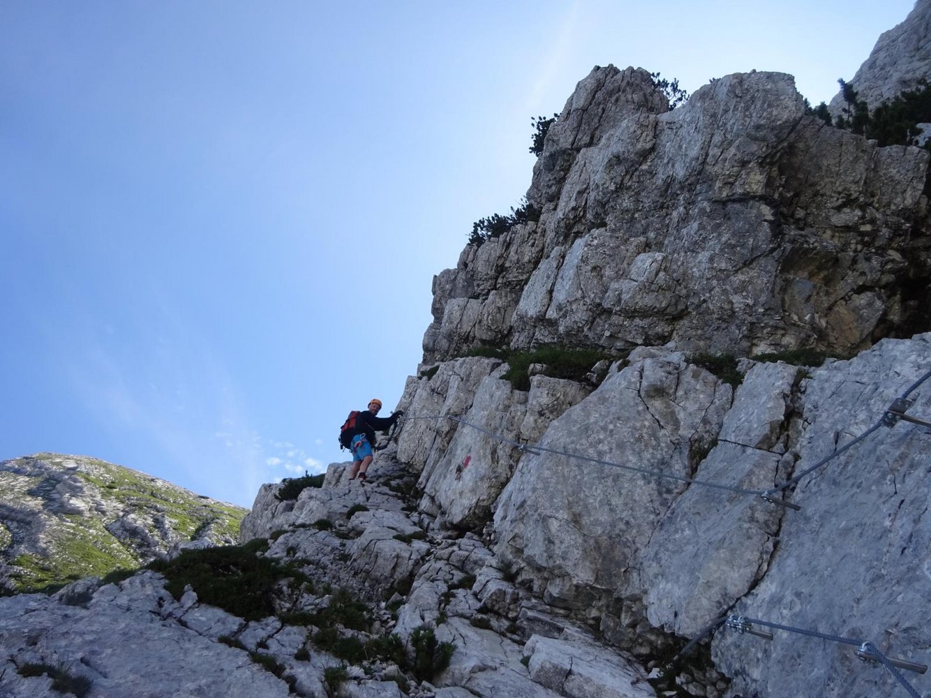 Zum Klettersteig selbst ist zu sagen, dass er beim Einstieg eine kurze C-Stelle aufweist, aber im überwiegenden Teil mit A und B auskommt. Einige Abschnitte können auch seilfrei begangen werden, im Abstieg ist man aber immer froh, wenn man sich festhalten kann. Der Steig durch die Westwand des Strug folgt einer logischen Linie und hat überwiegend guten, plattigen Fels.