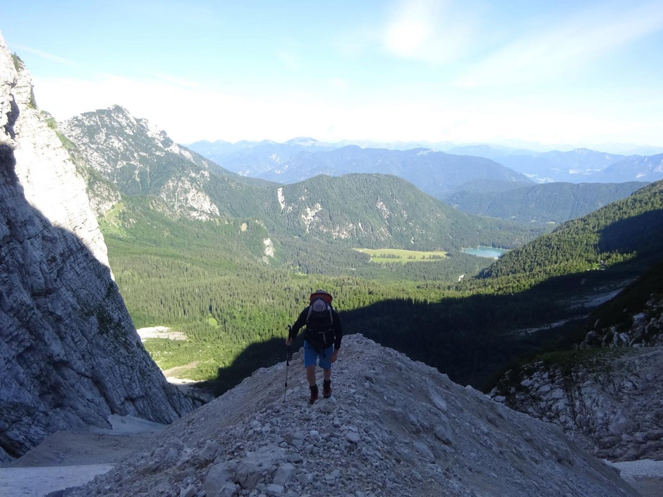 Komplette Klettersteigausrüstung, Helm. Eventuell kurzes Seil (30m) für Sicherungen für den oberen Teil der VDV.