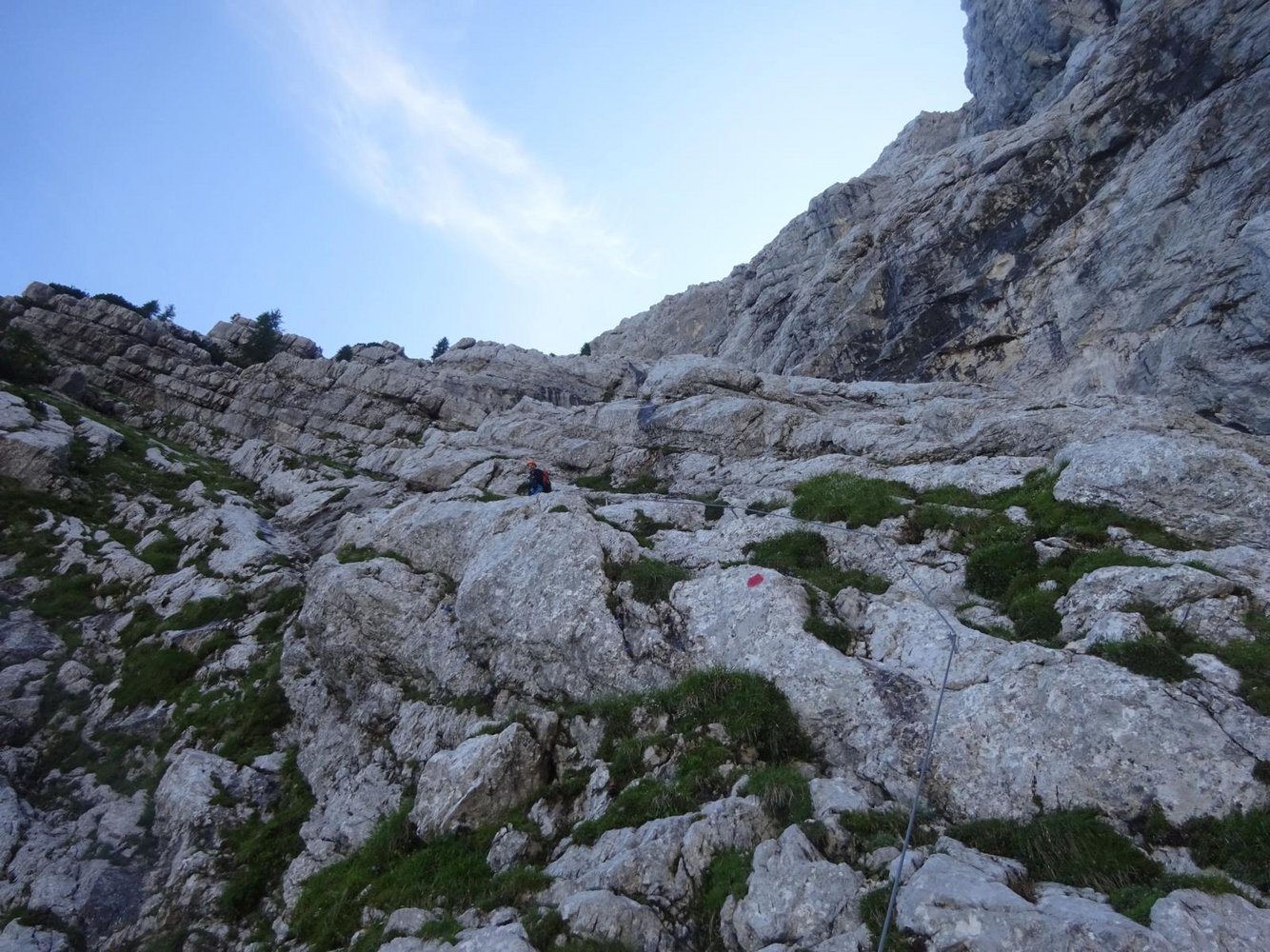Weiterweg: Von der Veunza über den Steig in Richtung Sagherza-Scharte (Biwak Busettini, 2149m) bzw. Über die Ferrata „Via della Vita“ (C/D) absteigen. Auch hier nur spärlich versichert und Kletterschwierigkeiten bis zum 2.Grad.