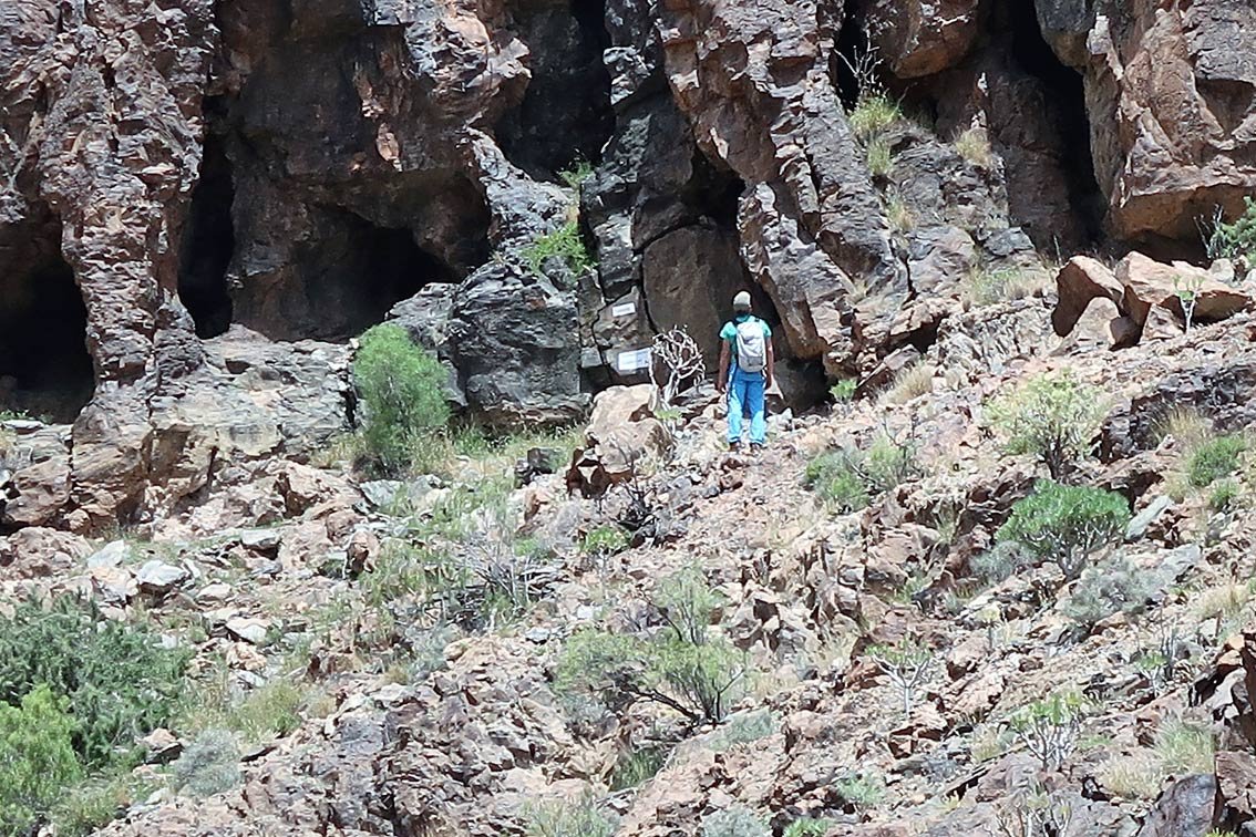 Von der GC 1 (Autobahn) über die Ausfahrt 37 San Agustin/Bahia Feliz auf die GC 500. Nach 1 km befindet sich gegenüber dem Hotel Orquidea eine Bushaltestelle. Direkt vor dieser nach rechts auf einen Schotterweg abbiegen und dort parken oder dem Weg 500 m nach rechts unter der Autobahn hindurch folgen. Vor einem Schranken auf einer Anhöhe parken.