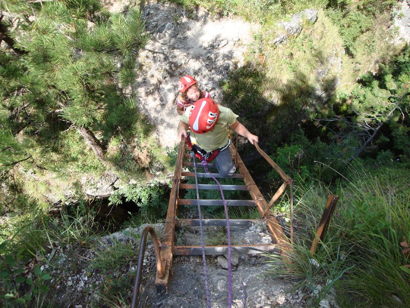 Der Burrone Giovanelli Klettersteig ist nichts für Menschen mit Platzangst! Die einfache Ferrata führt durch eine wildromantische, aber stellenweise sehr enge Klamm. Ein sehr schön gelegener Wasserfall lädt gegen Ende des Steiges zu einer ausgiebigen Rast ein. Highlights sind die langen Leitern gleich zu Beginn des Eisenweges und die mögliche Abfahrt von Monte nach Mezzocorona - dort gibt es eine lange Hängebrücke, einen Skywalk und eine "Selbstbedienungsseilbahn"!