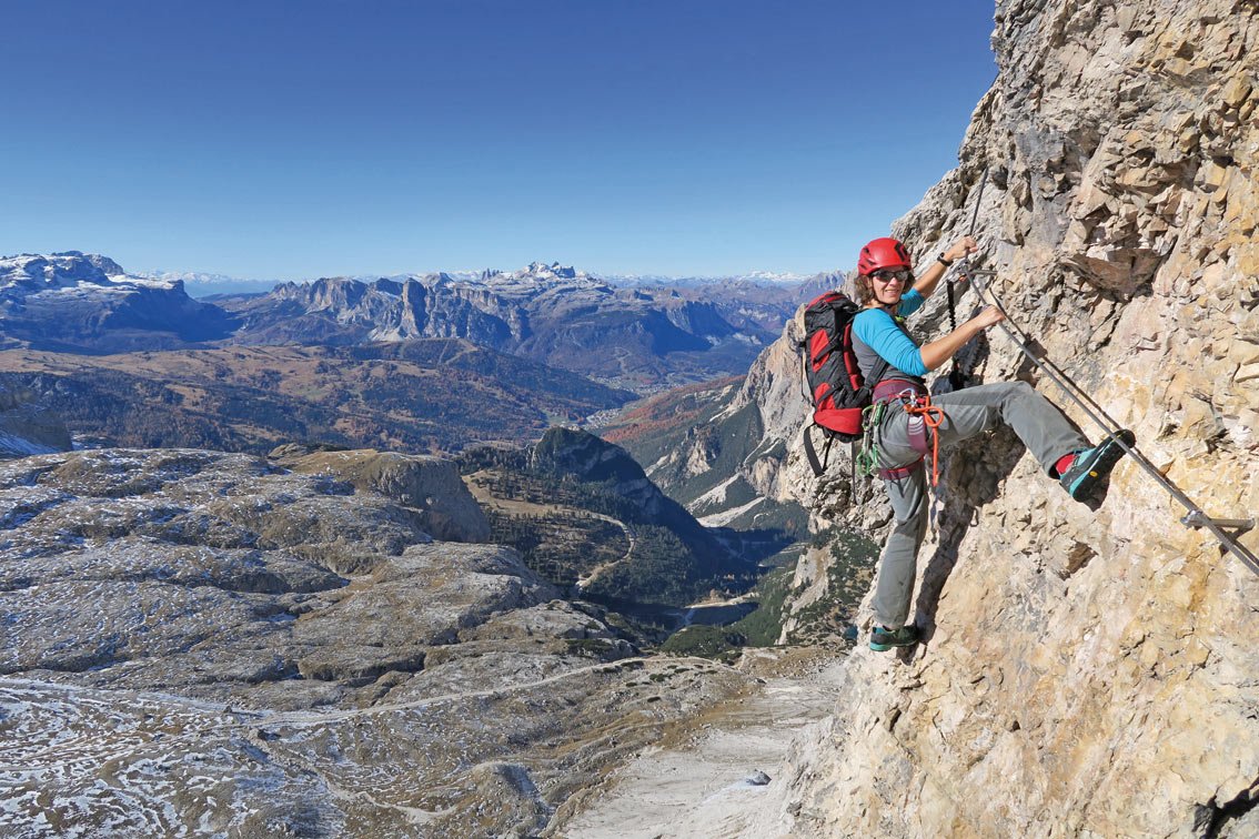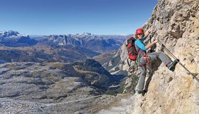 Die Via ferrata Cesco Tomaselli ist einer der ganz großen Klassiker unter den Dolomiten-Klettersteigen. Der Steig hat neben den landschaftlichen Reizen auch einige anspruchsvolle Vertikalpassagen zu bieten. Die Steiganlage führt auf die südliche Fanesspitze inmitten von schroffen Dolomitentürmen. Vom Gipfel reicht der Blick auf alle namhaften Dolomitengipfel und zu den schneebedeckten Eisriesen der Zillertaler Alpen. Wer glaubt, am Gipfel hat man die Ferrata geschafft, der irrt. Der Abstieg über die Nordostseite zur Forc. dei Quaire verlangt höchste Konzentration, ehe man das rettende Schuttfeld erreicht. In Kombination mit dem Abstieg über den sehr gut instand gesetzten Lagazuoi-Tunnel wandelt man schlussendlich noch auf historischen Spuren und steigt quasi „durch den Berg“ wieder zum Ausgangspunkt ab.