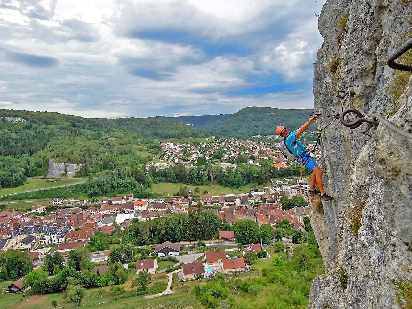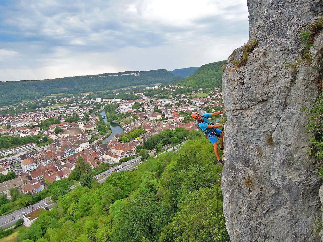 Über dem lieblichen Städtchen Ornans erhebt sich ein Hügel mit einer langezogenen, etwa 40 Meter hohen Felsklippe, dem Rocher du Mont. Entlang dieser Klippe quert auf 380 Metern immer knapp unter der oberen Felskante des Rocher du Mont. Ein gemütlicher auch für Anfänger geeigneter Klettersteig, von dem man immer einen schönen Blick auf die Dächer von Ornans und den Fluss La Loue hat.