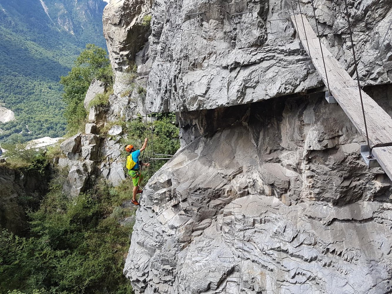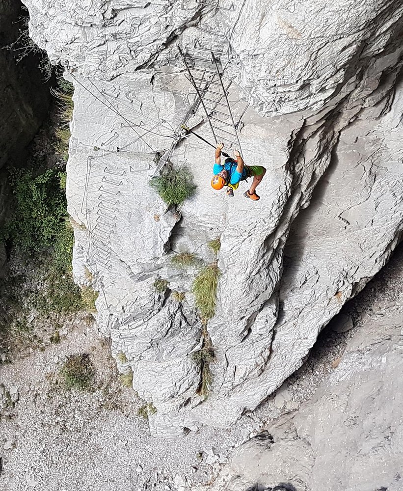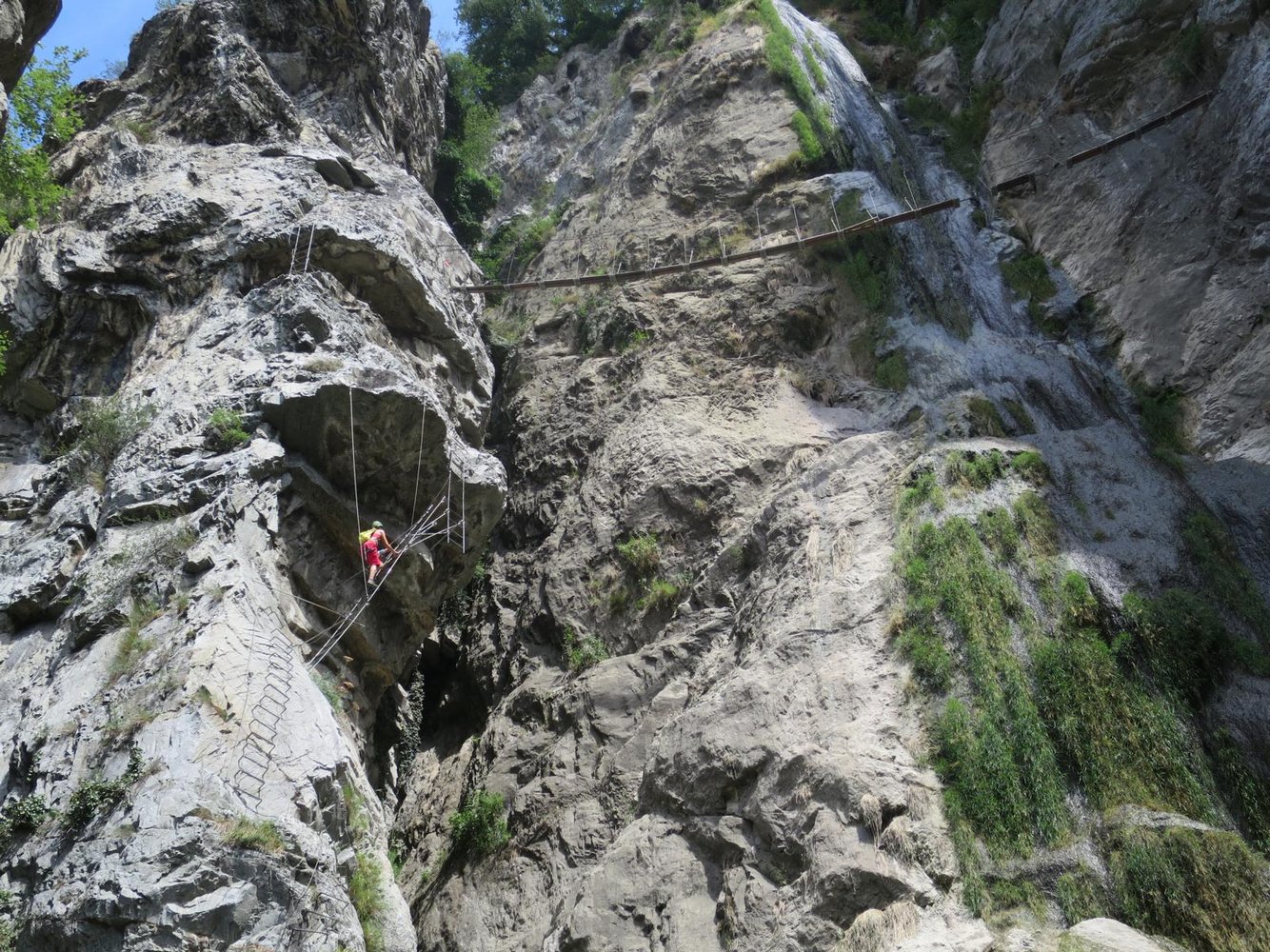 Ein sehr schöner Klettersteig mit einem athletischen Beginn, gefolgt von einer langen Nepalbrücke, die an einem Wasserfall vorbei führt. Eigentlich alles perfekt, wäre da nicht die Nähe zur Autobahn, die den Frieden etwas stört. Dennoch ein lohnendes Ferrata-Ziel, das sich gut mit dem schweren Klettersteig La Bastion verbinden lässt und das Dank der Straßen- und Talnähe im Vorbeifahren einfach mitgenommen werden kann.