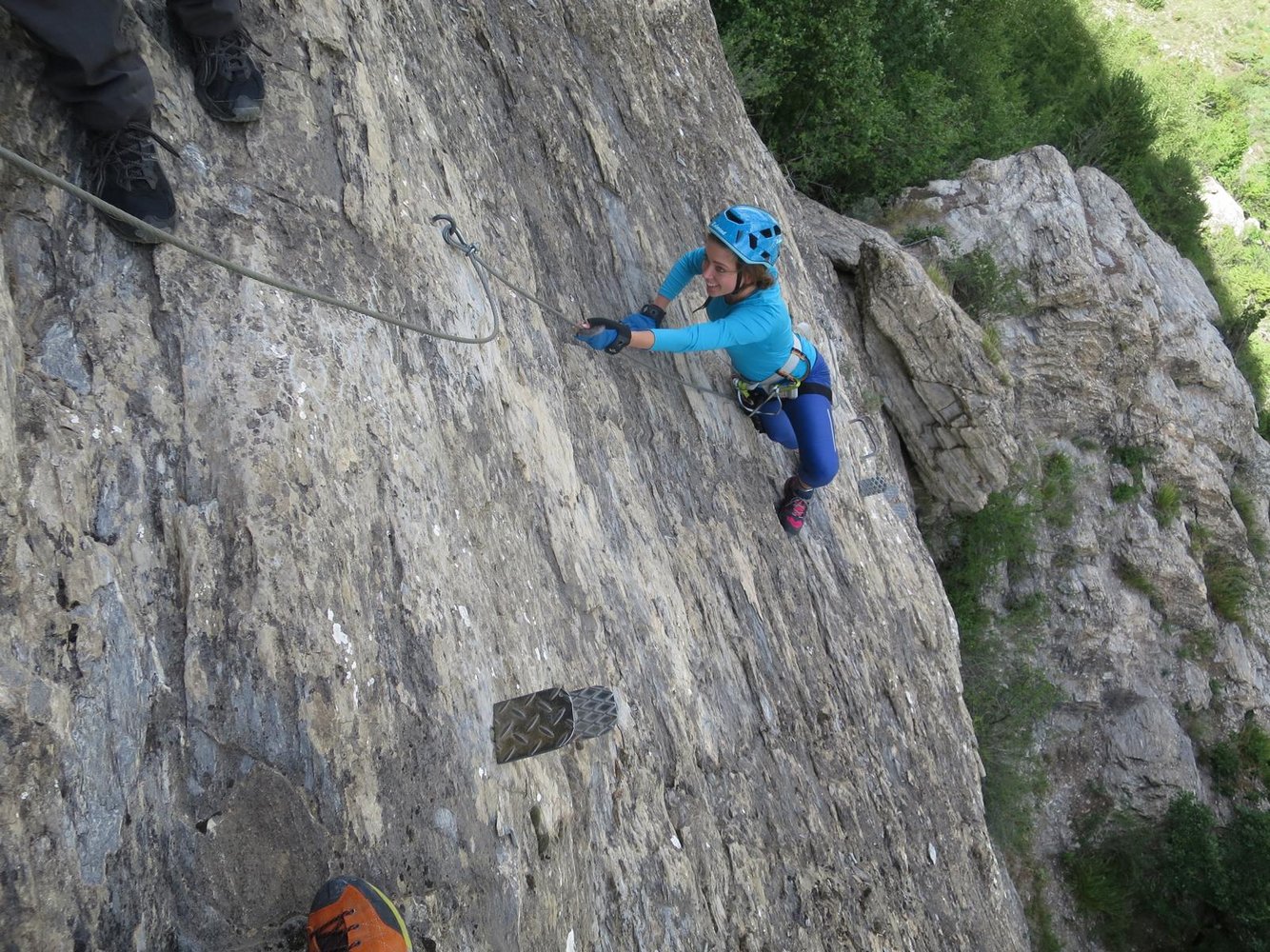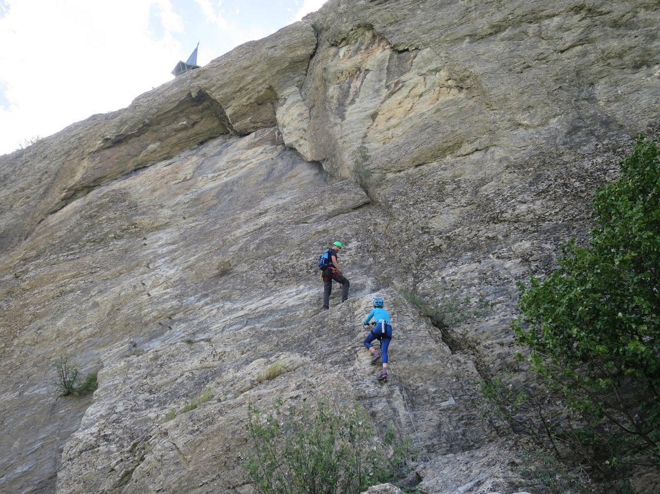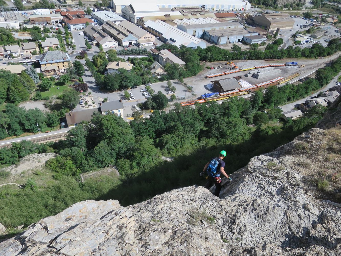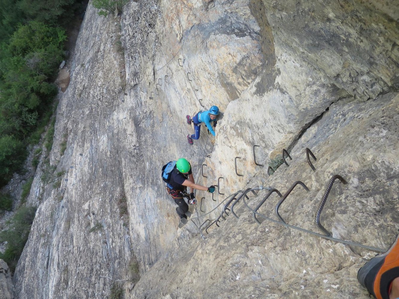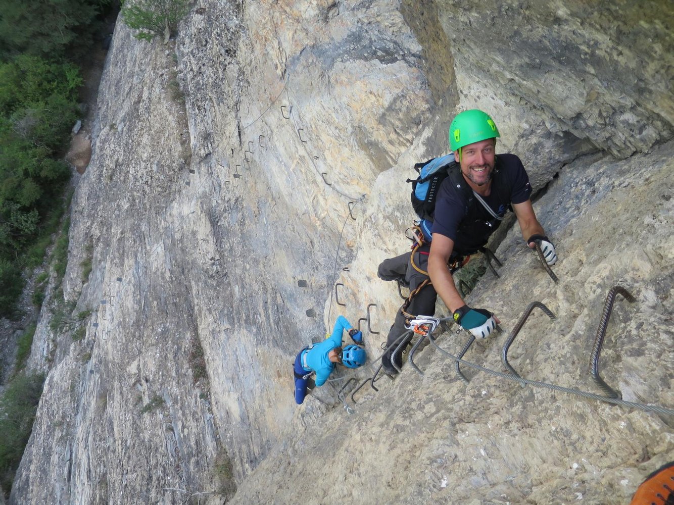 Mini-Ferrata auf den Hausberg von l'Argentière-La-Bessée. Die Crux liegt in der steilen, sogar leicht überhängenden Schlusswand.