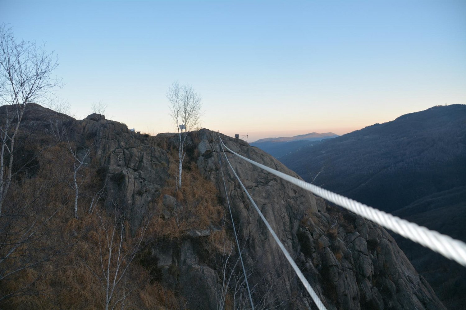 2.) Das Abklettern am leichten KS ab dem Belvedere ist nicht untersagt (bitte Rücksicht auf den jeweiligen Andrang aufwärts). Im Abstieg ist der schon lange bestehende Picasass noch schöner, da man fast permanent auf den Lago Maggiore blickt. Dann am Zustiegsweg retour
