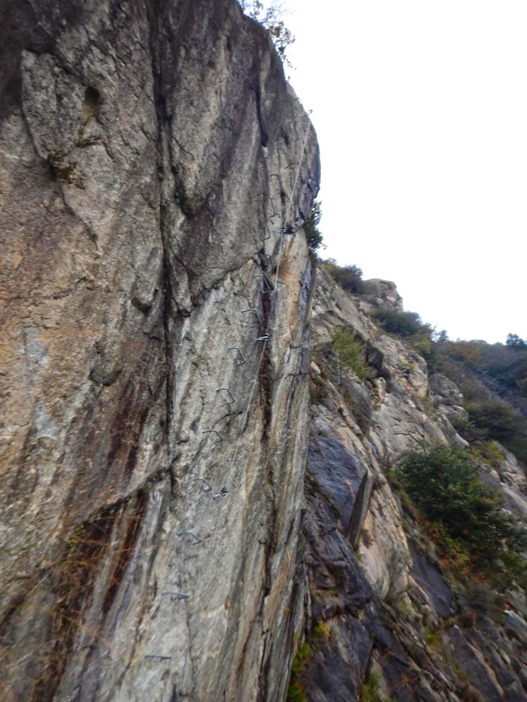 Zum schon länger bestehenden leichten Klettersteig Via ferrata dei Picassas wurde jetzt eine richtig anspruchsvolle Sportvariante dazu gebaut. Diese erfordert im unteren Bereich Ansteigen auf dem wunderschönen rosa Granit ohne Tritthilfen. Der Fels bleibt jedoch auch leicht nass noch griffig. Die leicht überhängenden Steilwände weiter oben werden dann auf langen Bügelreihen überwunden. Die Ausstiege sind jeweils recht luftig.