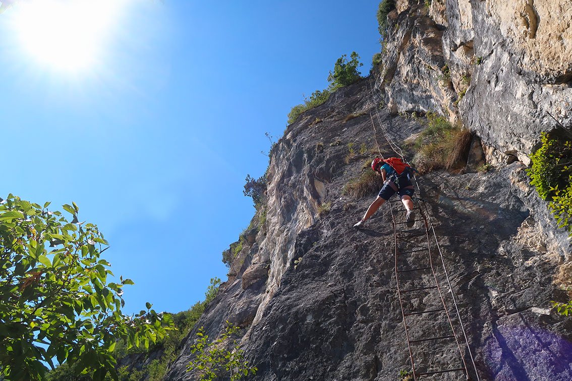 Eine der besten Gardasee-Ferratas und eine der ältesten Steiganlagen der Region liegt am Nordufer des Gardasees, direkt oberhalb des viel besuchten Touristenortes Riva del Garda. Für die Via dell' Amicizia sollte man ein gewisses Maß an Kondition mitbringen, denn man bewältigt bis zum Gipfel fast 650 Hm. Oben angekommen eröffnet sich den Klettersteiggehern eine atemberaubende Sicht auf den tiefblauen Gardasee, das Städtchen Riva und auf das nördlich gelegene Sarcatal. Ein weiteres Highlight dieses wunderschön gelegenen Klettersteiges sind die zwei steilen Leiterpassagen. Um diese Ferrata auch richtig genießen zu können, sollte man einen Tag mit nicht zu heißem Wetter wählen.