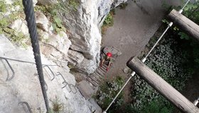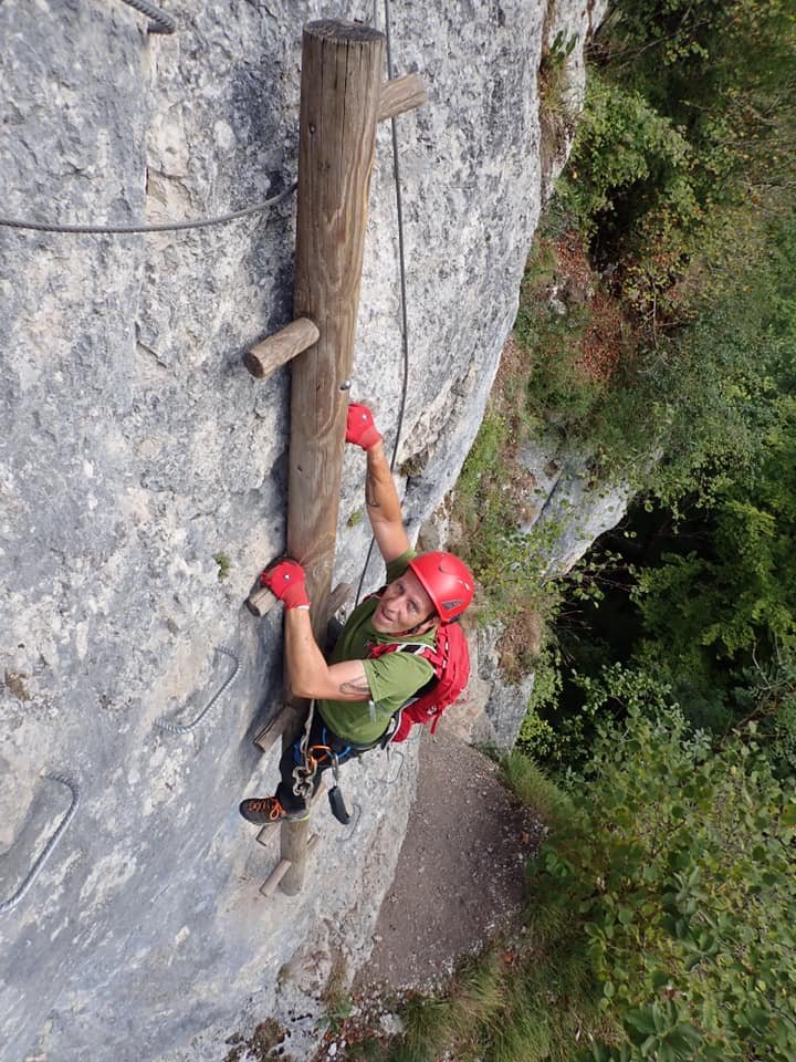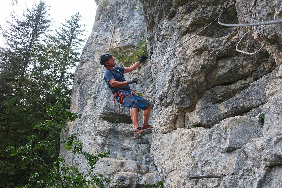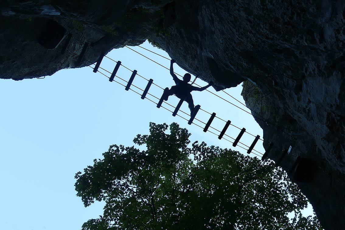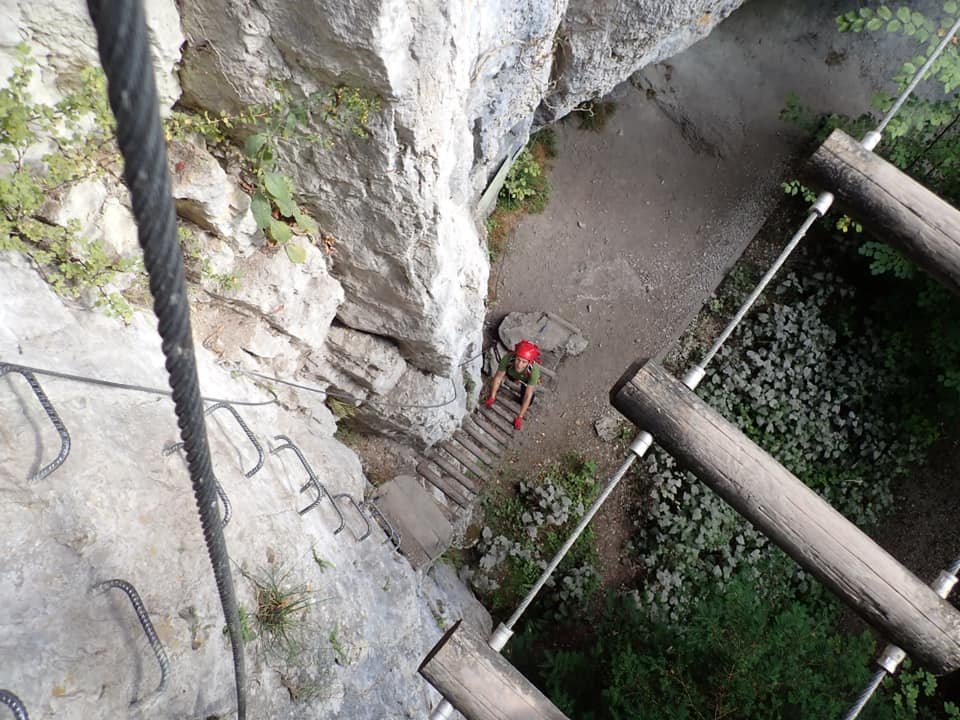 Gut gesichert in typisch französischer Bauart: Durchhängende Sicherungsseile, dafür jede Menge Tritthilfen und Halteklammern.