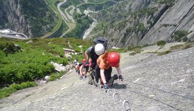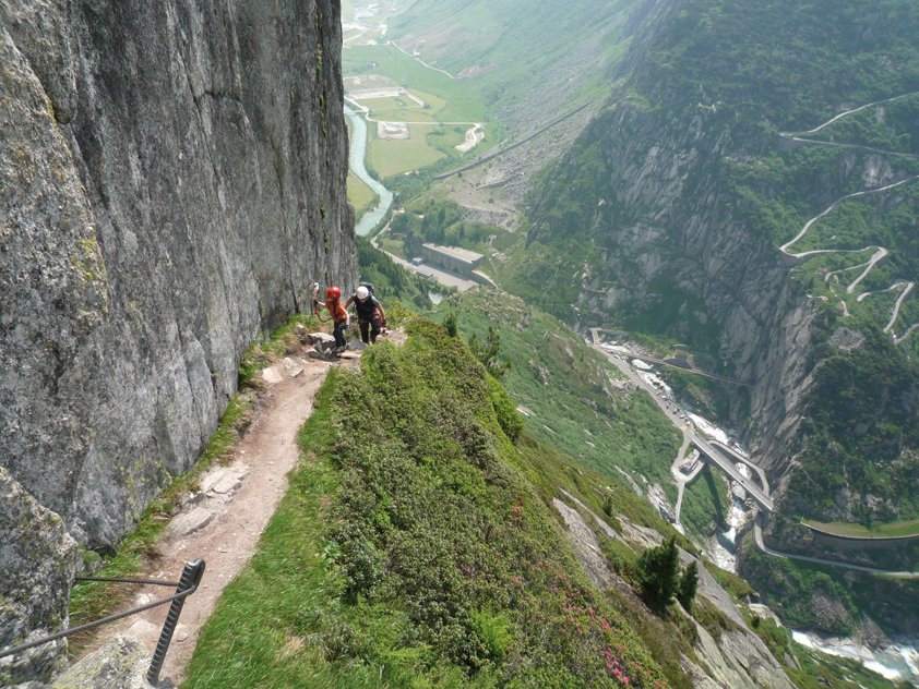 Klassischer Familienklettersteig, der nie besonders schwer ist. Auf dem Klettersteig gibt es aber keine Fluchtmöglichkeit, das sollte man berücksichtigen, wenn man mit Kindern unterwegs ist. Wegen der Nähe zur Straße ist der Steig immer sehr gut besucht. Bei Nässe sind die glatten Platten und Graspassagen gefährlich. Achtung: Man parkt den PKW besser in Andermatt - bei der Teufelsbrücke limitierte Parkzeit und auch der Parkraum ist dort begrenzt.