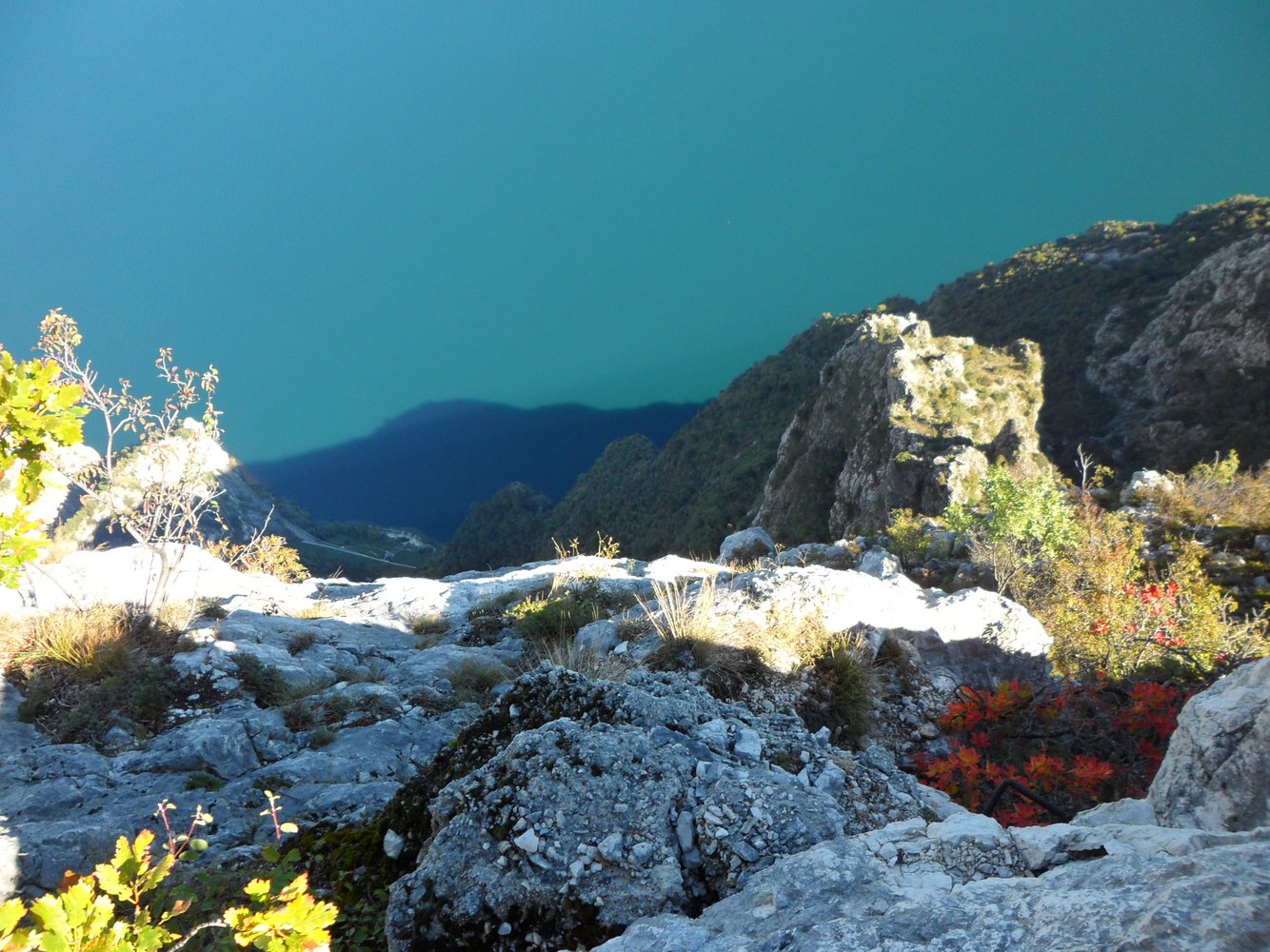 Über den Klettersteig Via Ferrata Mario Foletti (A/B), stellenwiese recht ausgesetzt und später über den Zufahrtsweg zur Kirche Chiesa San Giovanni, von dort dann hinunter nach Biacesa del Ledro.
