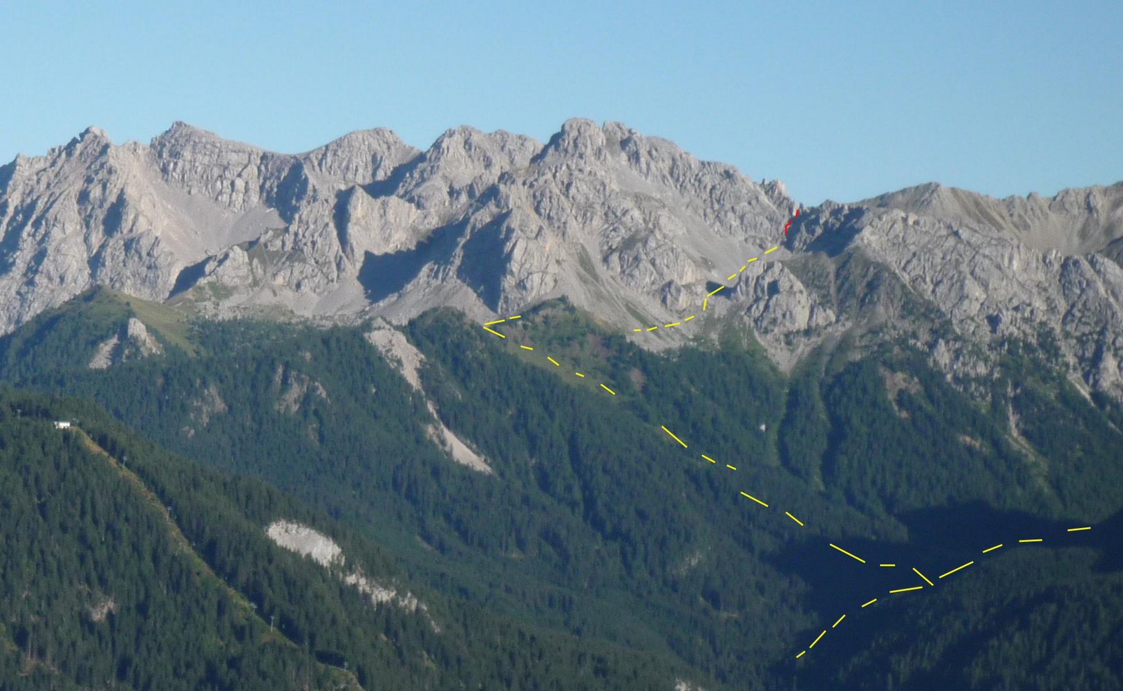 Kurzer Klettersteig, der als nordseitiger „Zustieg“ für die Ferrata Bepi Zac und Ferrata Bruno Federspiel interessant ist, als eigenständige Unternehmung aber nicht lohnend