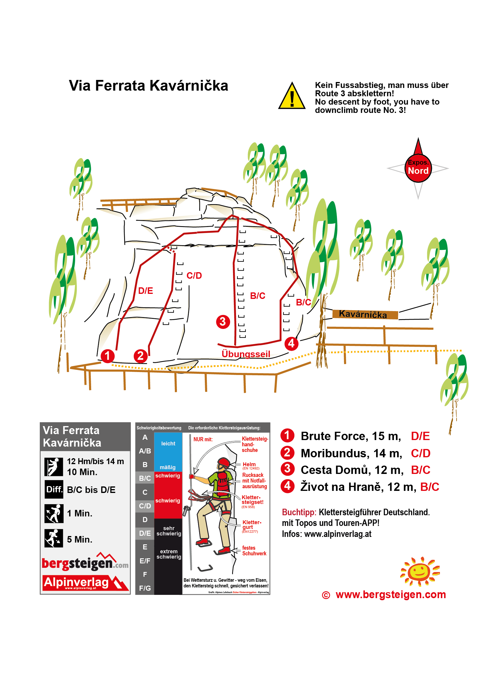 Via Ferrata Kavárnička (Schwierigkeiten: KS 3 bis KS 5, bzw. B/C bis D/E):