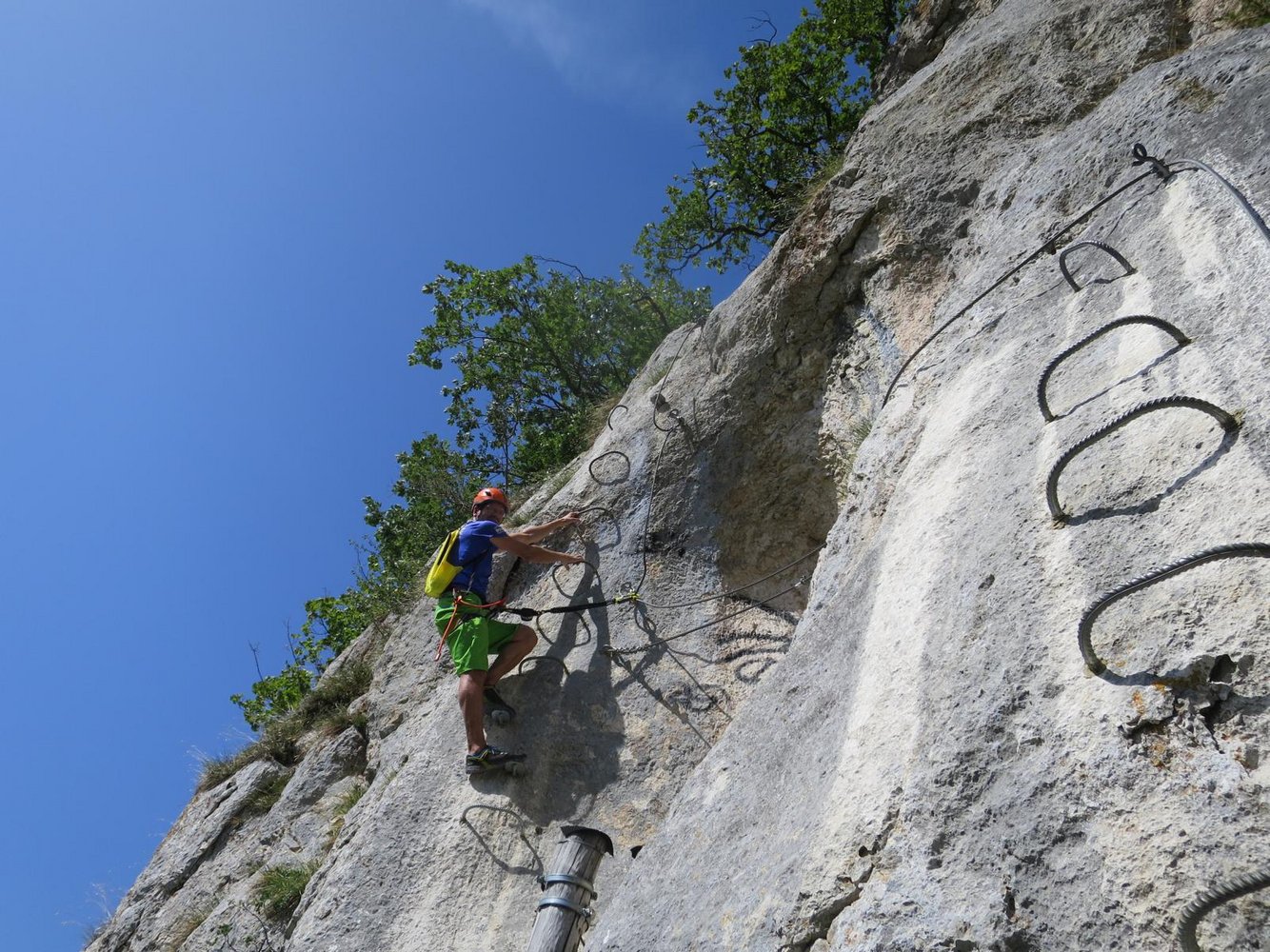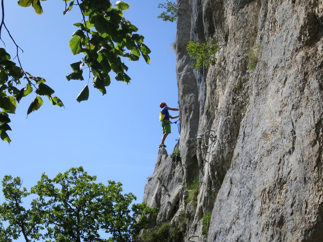 Kurzer, einsamer und netter Klettersteig bei der Chartreuse du Pomier mit einem schönen Blick auf Ebene von Sait-Julien-en-Genevois. Trotz der Nähe zur Autobahn stört diese nicht und erlaubt, diesen Klettersteig quasi im Vorbeifahren mitzunehmen.