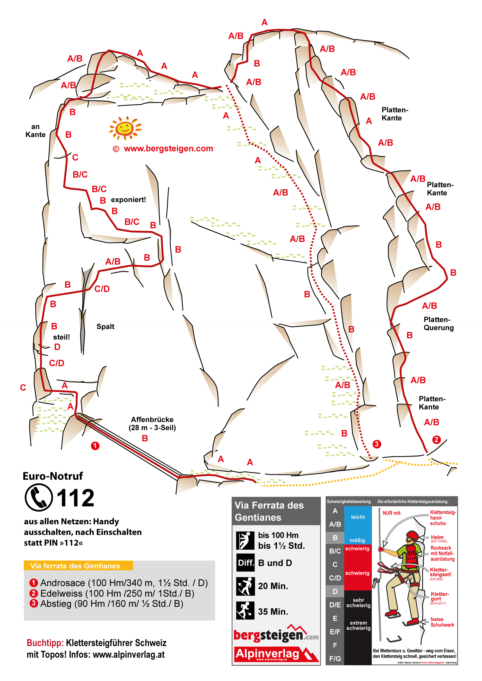 Der Klettersteig kann aber natürlich auch mit der eigenen, herkömmlichen Ausrüstung gemacht werden.