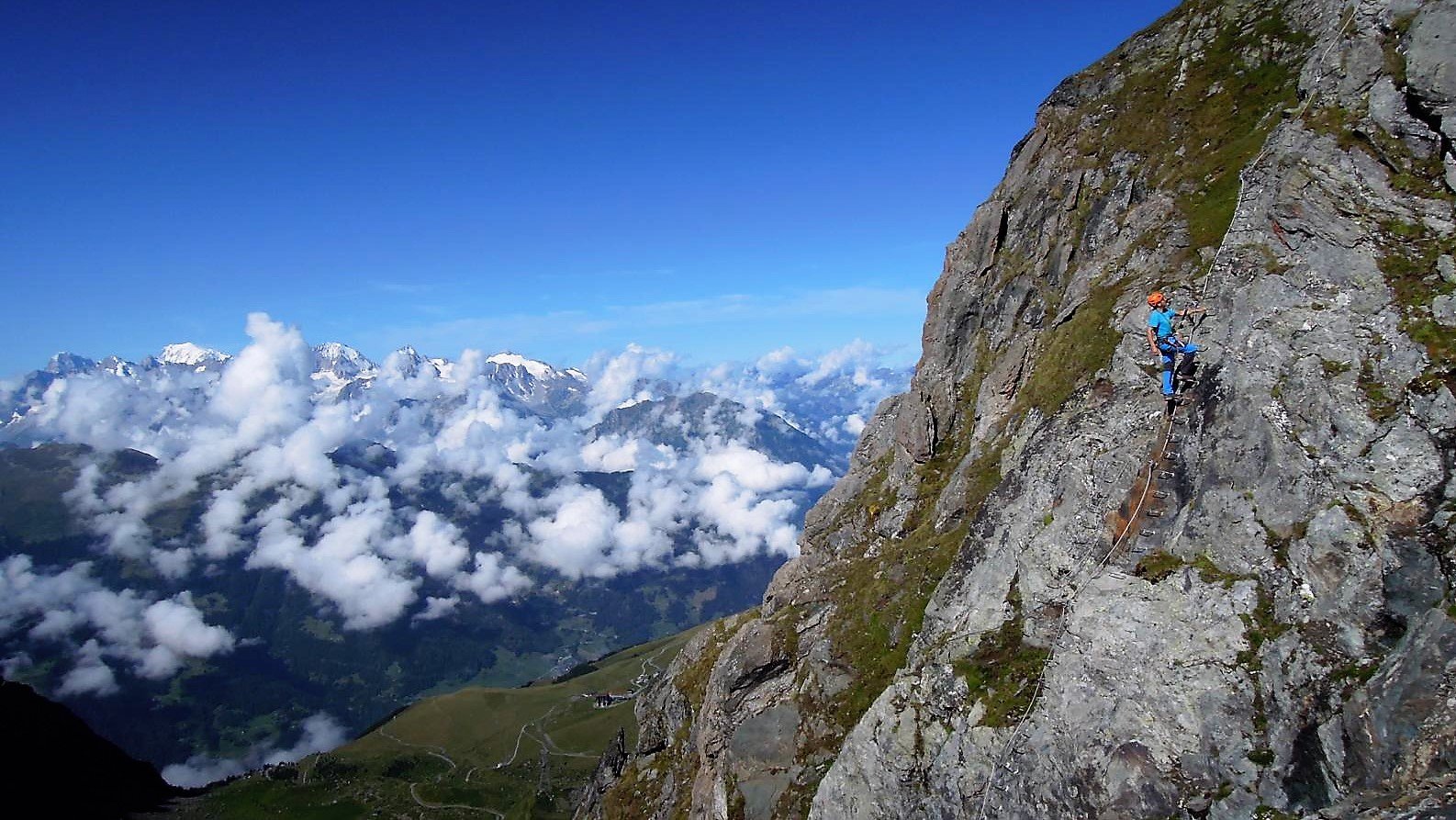 Ein schöner aber recht kurzer Anfänger-Klettersteig beim Col Gentianes, der mit einer durchgehenden "PRISME AEROLINE" Seilsicherng ausgestattet ist. Die damit kompatible Ausrüstung, die ein gleichzeitiges Aushängen beider Karabiener unmöglich macht, kann in der Bergstation (20 SFR, Stand 2019) geliehen werden.