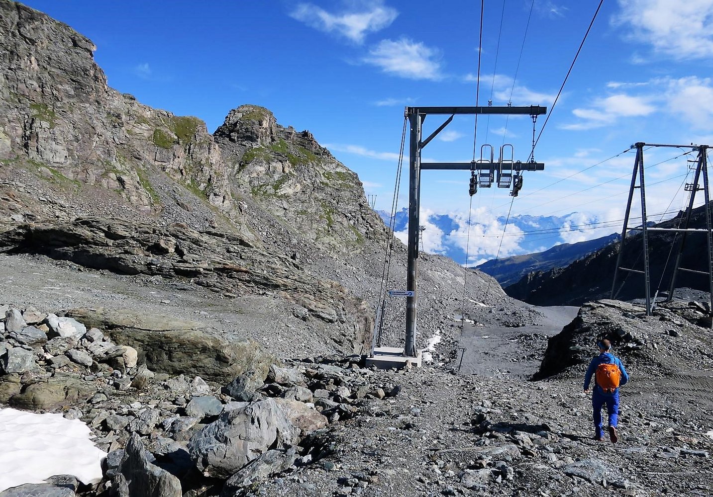 Trotz Seilbahnnähe sollte man beachten, dass man sich im Hochgebirge auf 3000 Meter befindet, insbes. bei Schlechtwetter und Gewittergefahr!